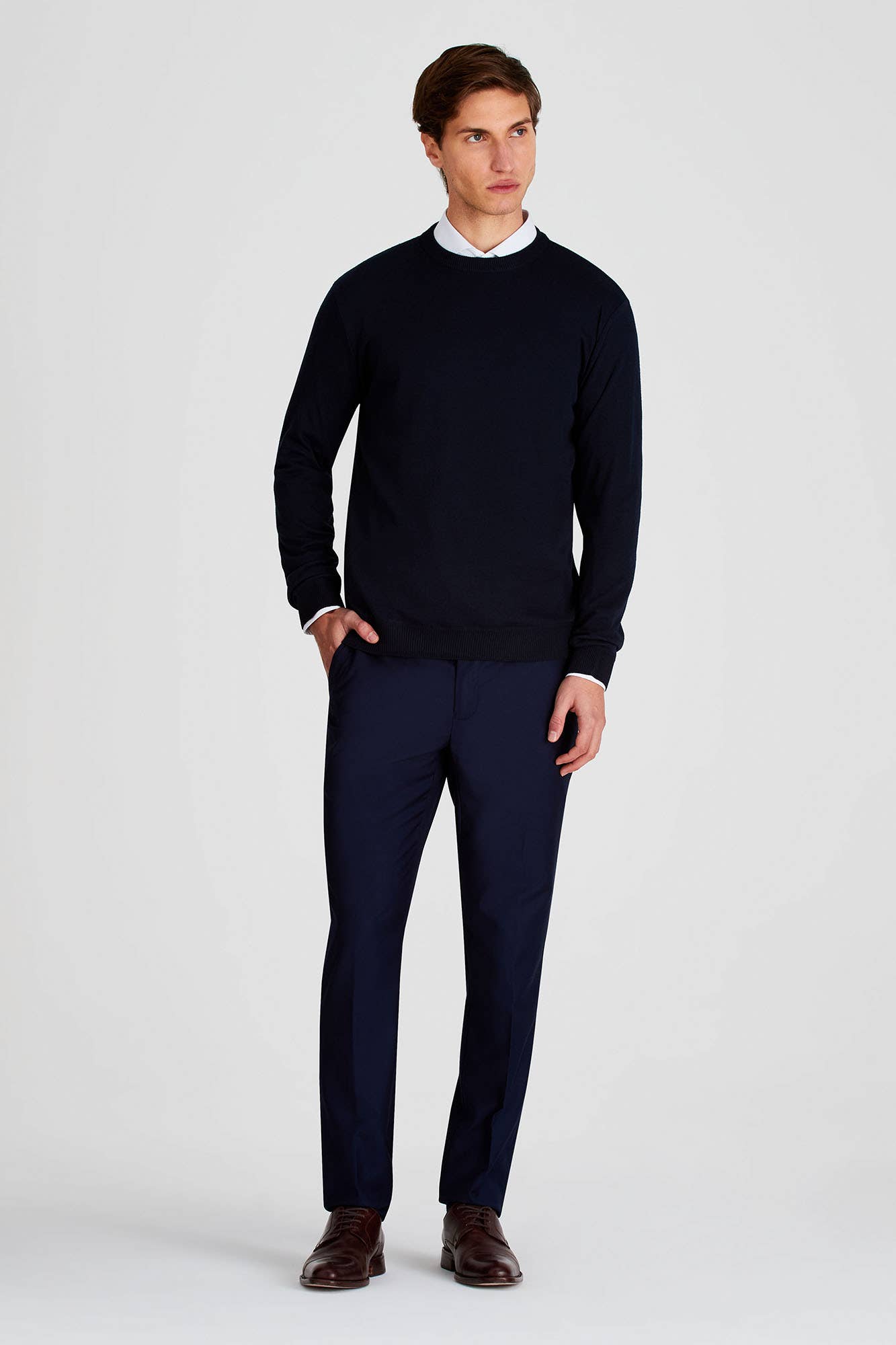 Pantalón Vestir Ss100 Liso Entallado Azul Marino