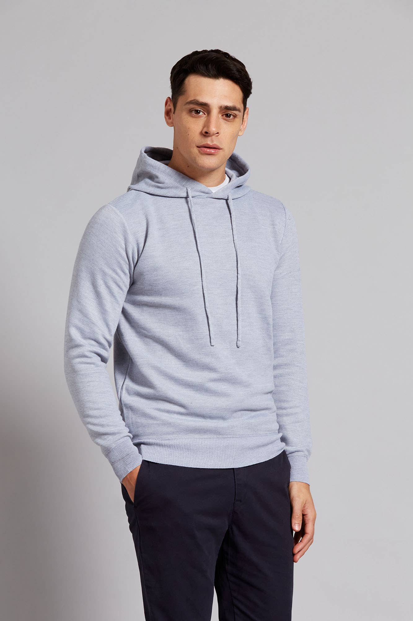 Sweater Liso Con Capucha Gris Claro