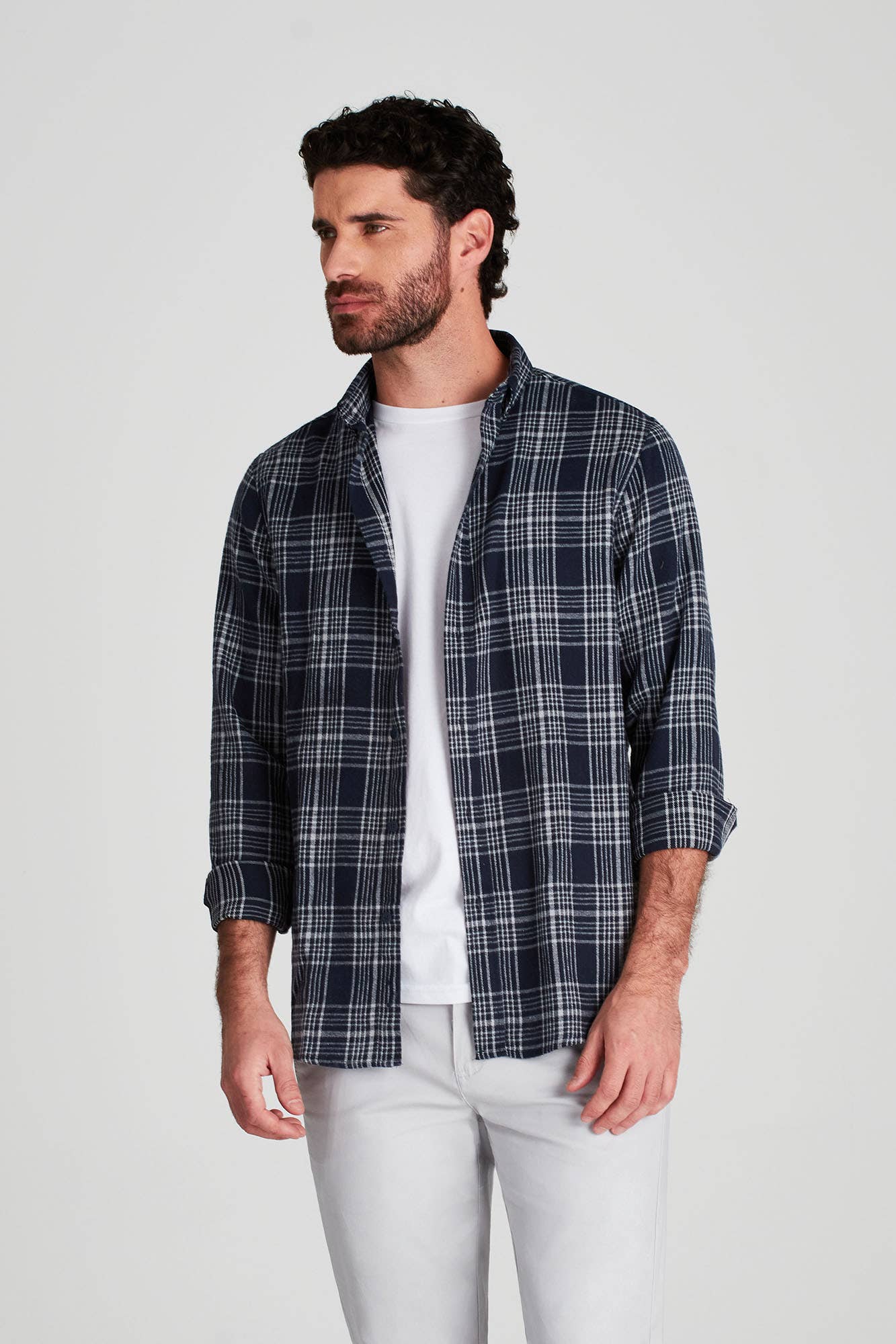 Camisa Viyela Cuadros Azul Marino