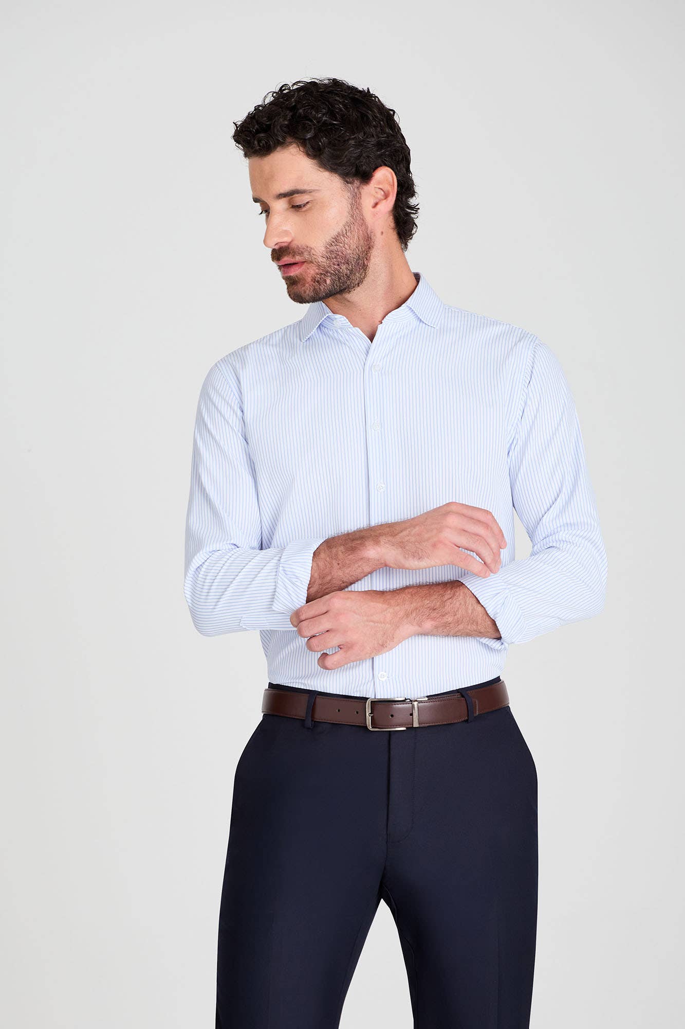 Camisa De Vestir Rayada Entallada Celeste