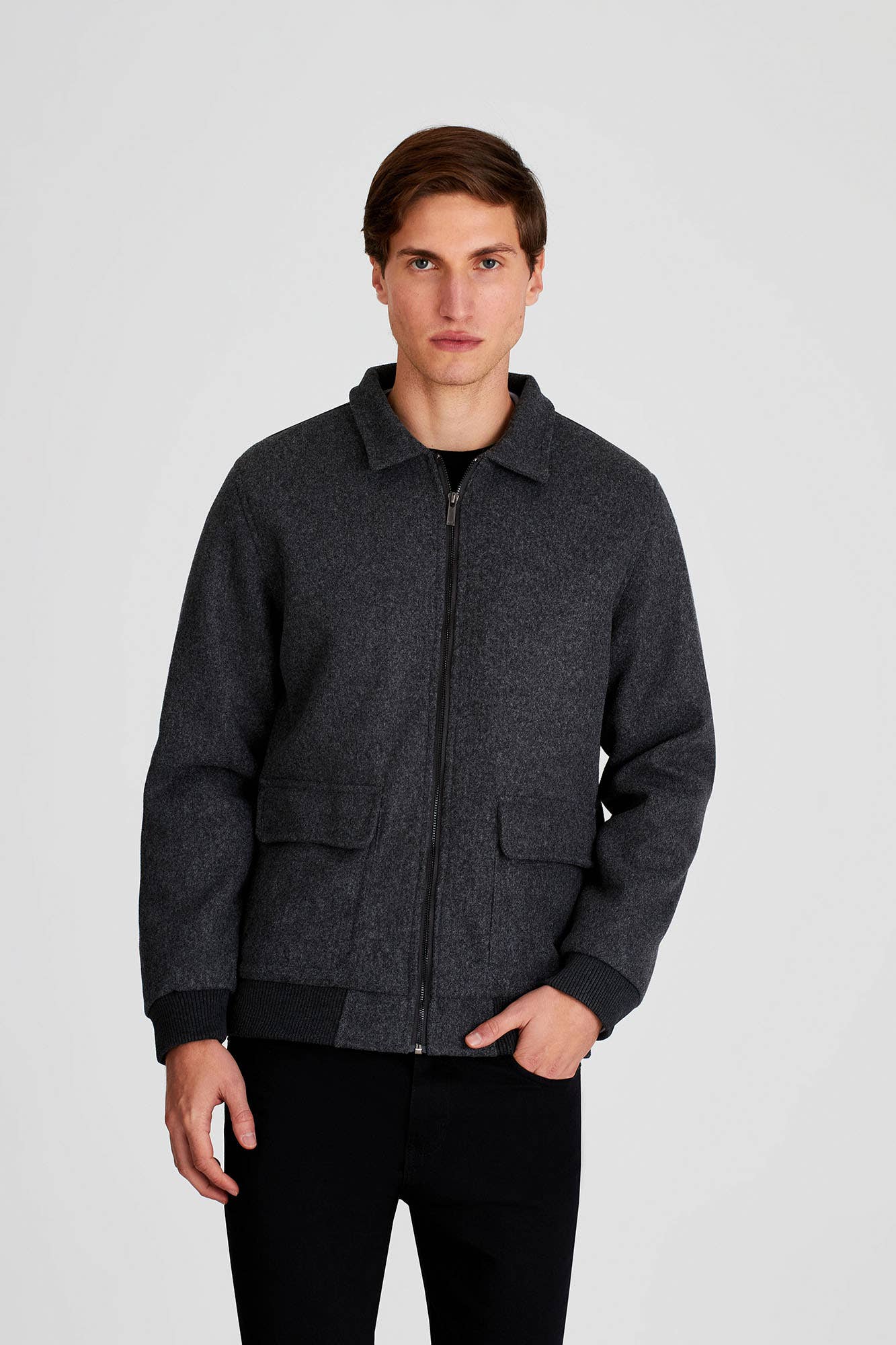Chaqueta Pa帽o Lisa Gris Oscuro