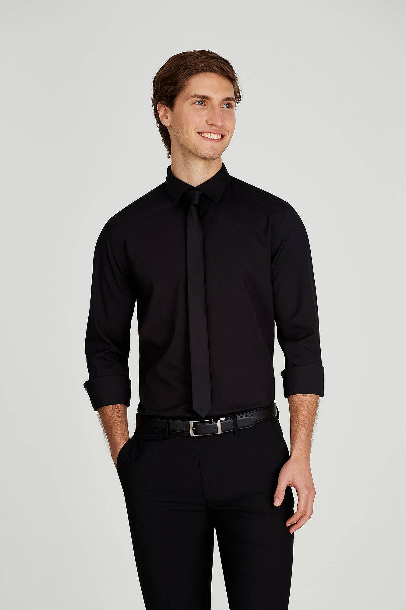 Camisa De Vestir Lisa Entallada NegraDescripción