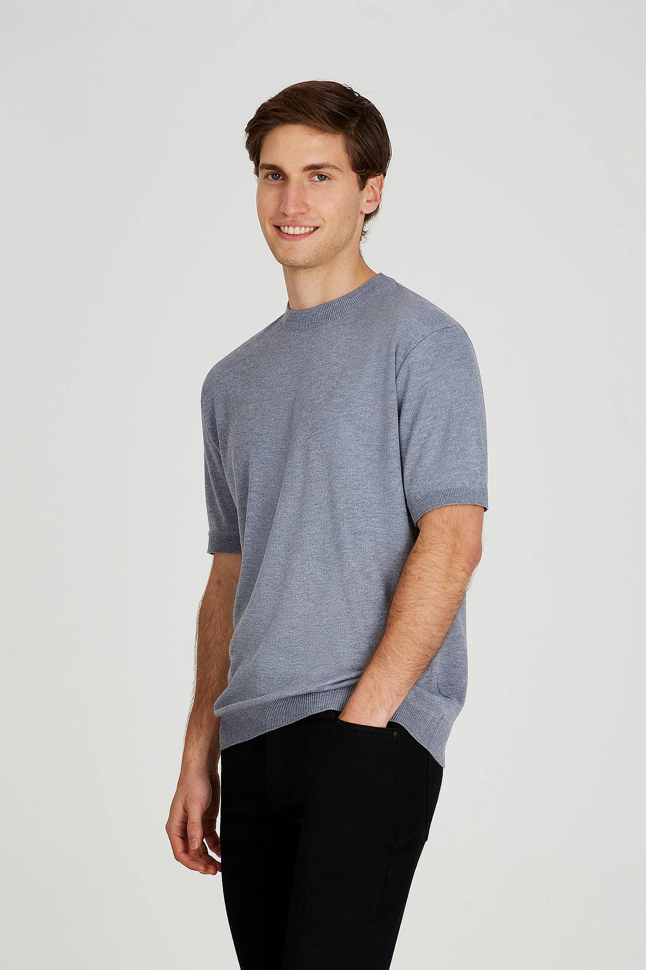 Remera Tejida Lisa Gris MelangeDescripción