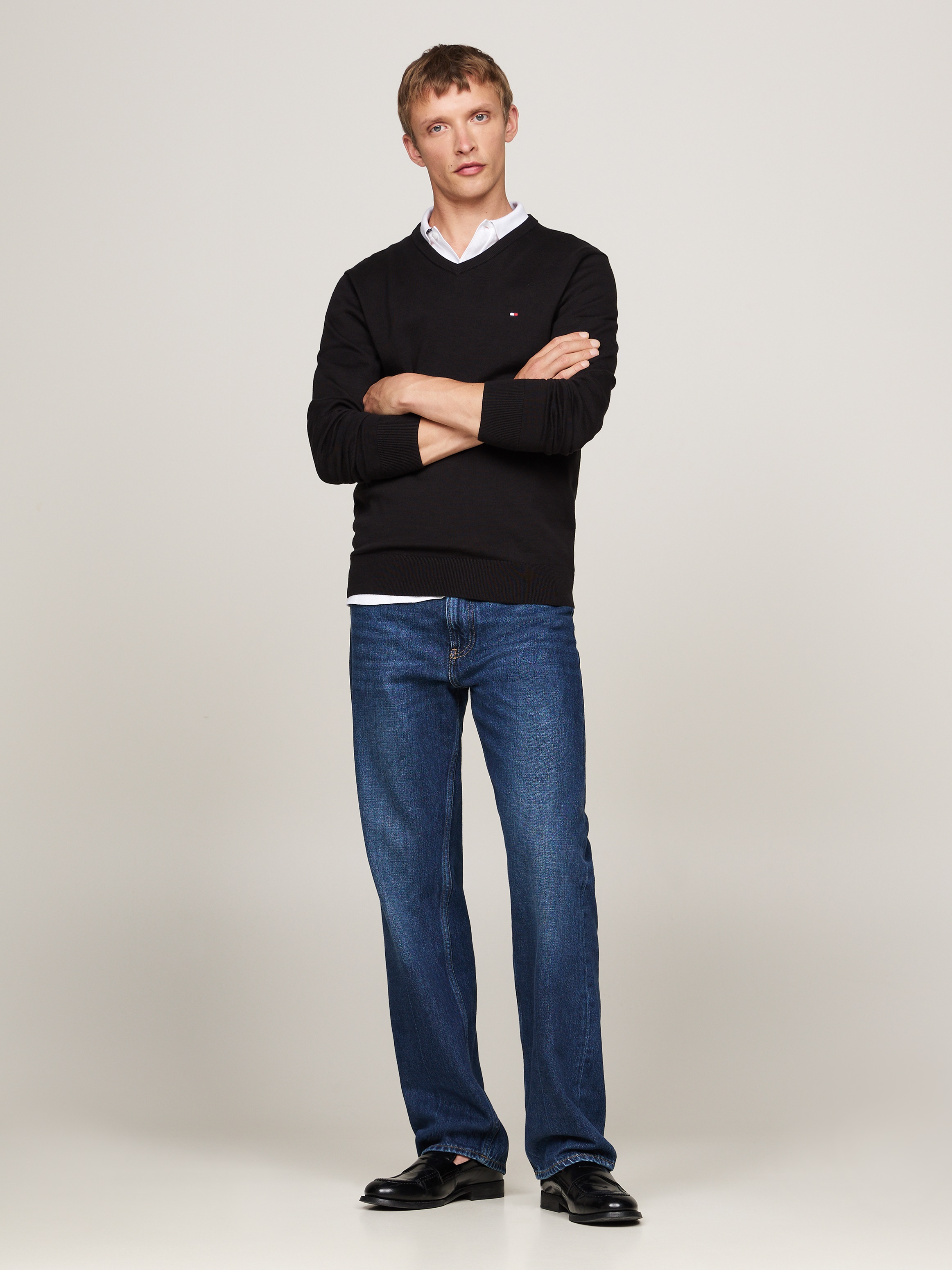Sweater Básico De Algodón Cuello V Regular Fit