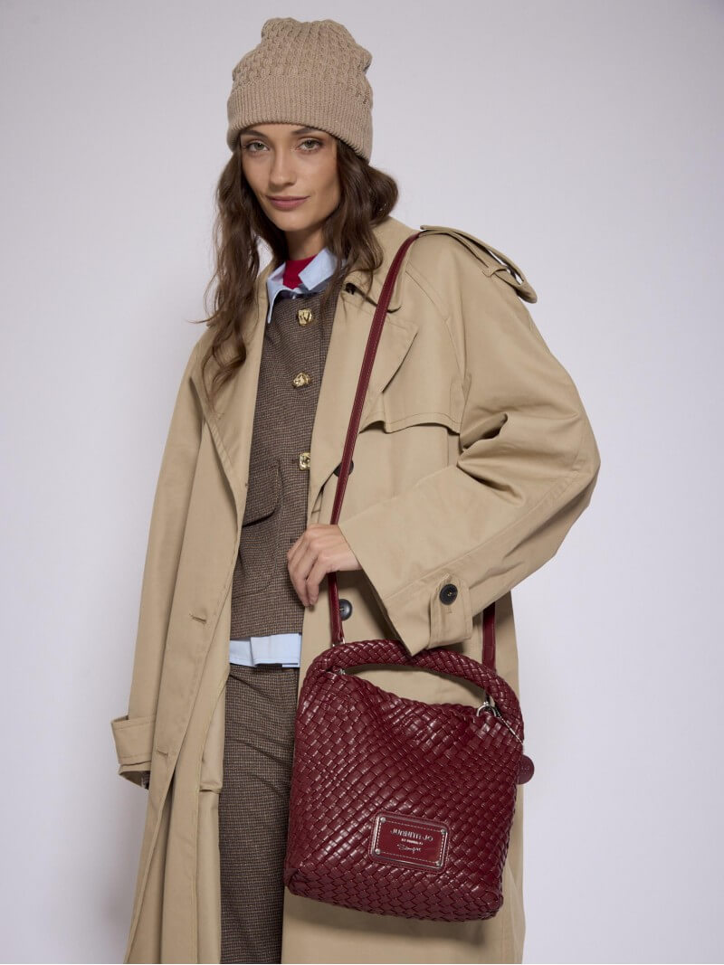 Cartera Mediana Tipo Maletín Bordó Mara