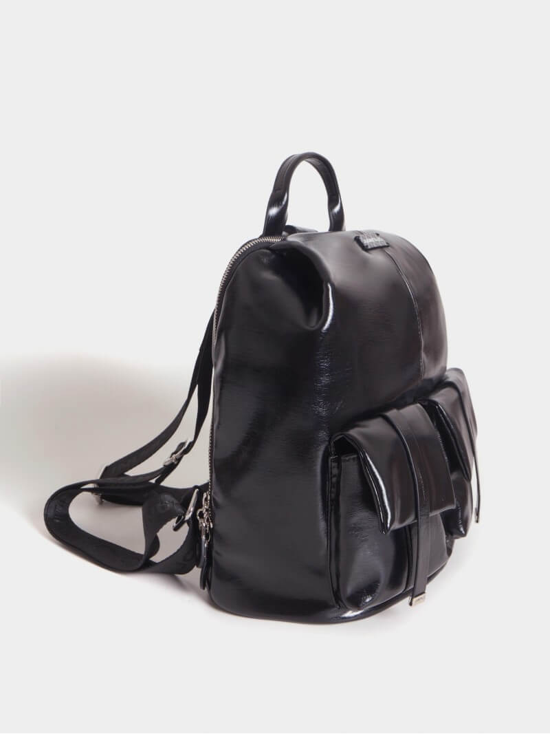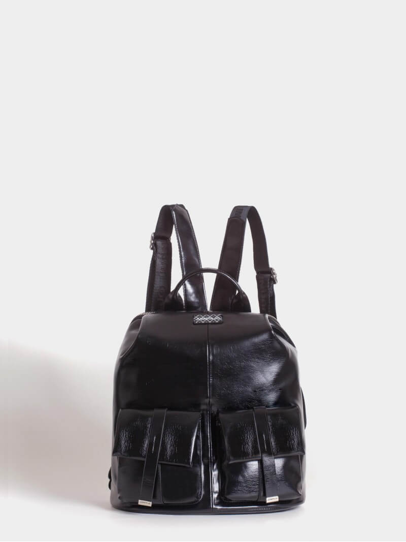 Mochila Negra Efecto Charol Roxie