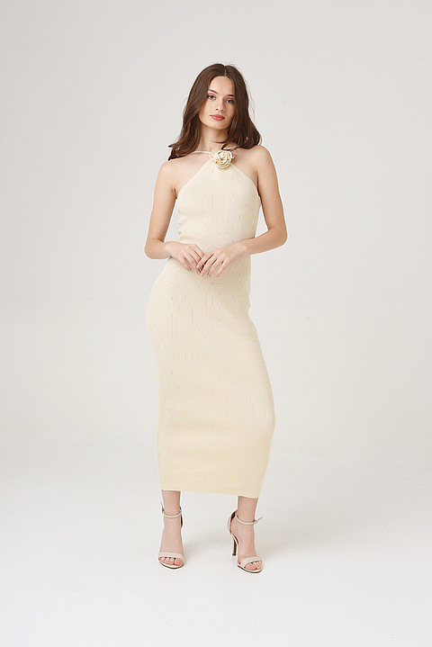 Vestido Nude Midi Con Flor