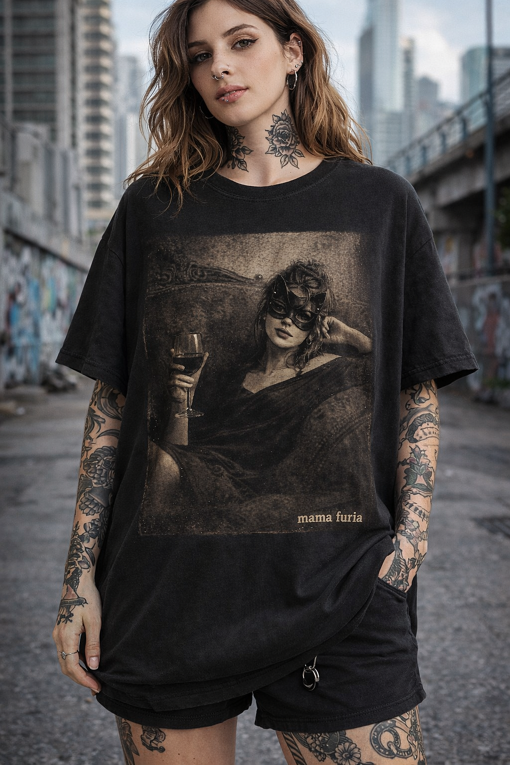 Remera Oversize Mama Furia-Cat