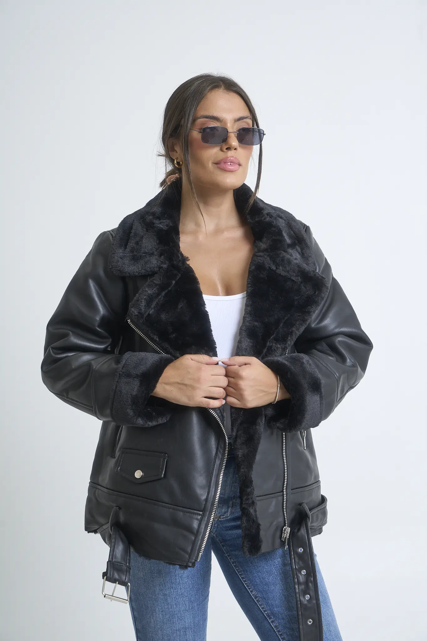 Campera Gamulán Negra Eco Cuero Con Corderito Art.593