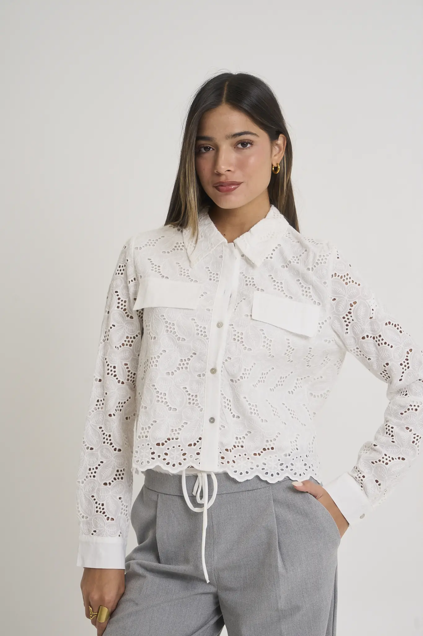 Camisa De Broderie Bordada Y Boton Nacarado Art.25006