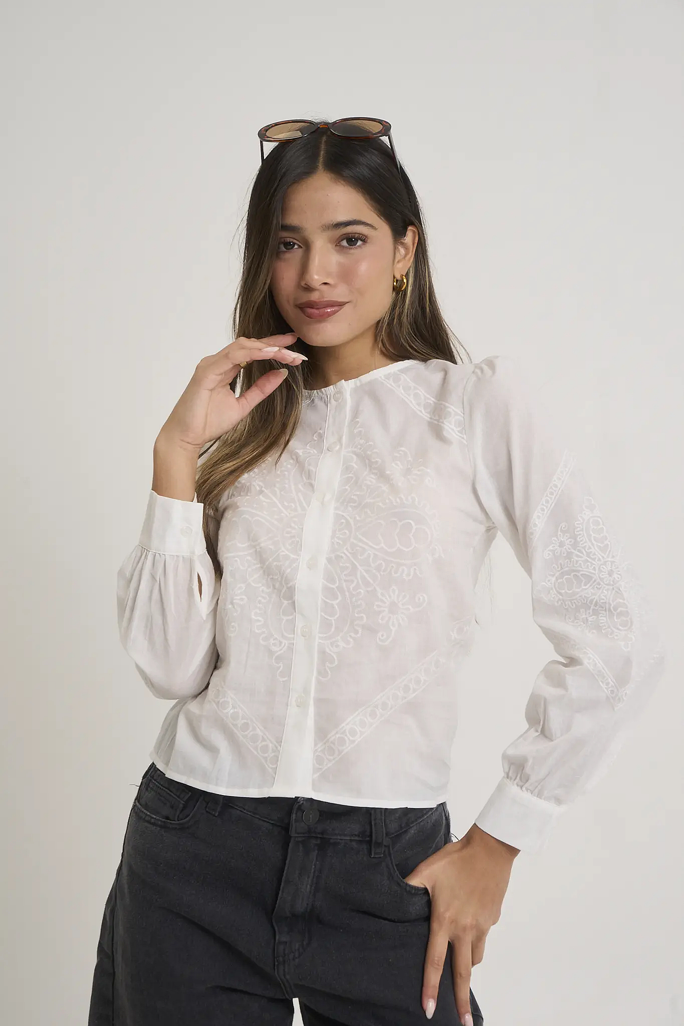 Camisa Cuello Mao Bordada Art. St 04Descripción