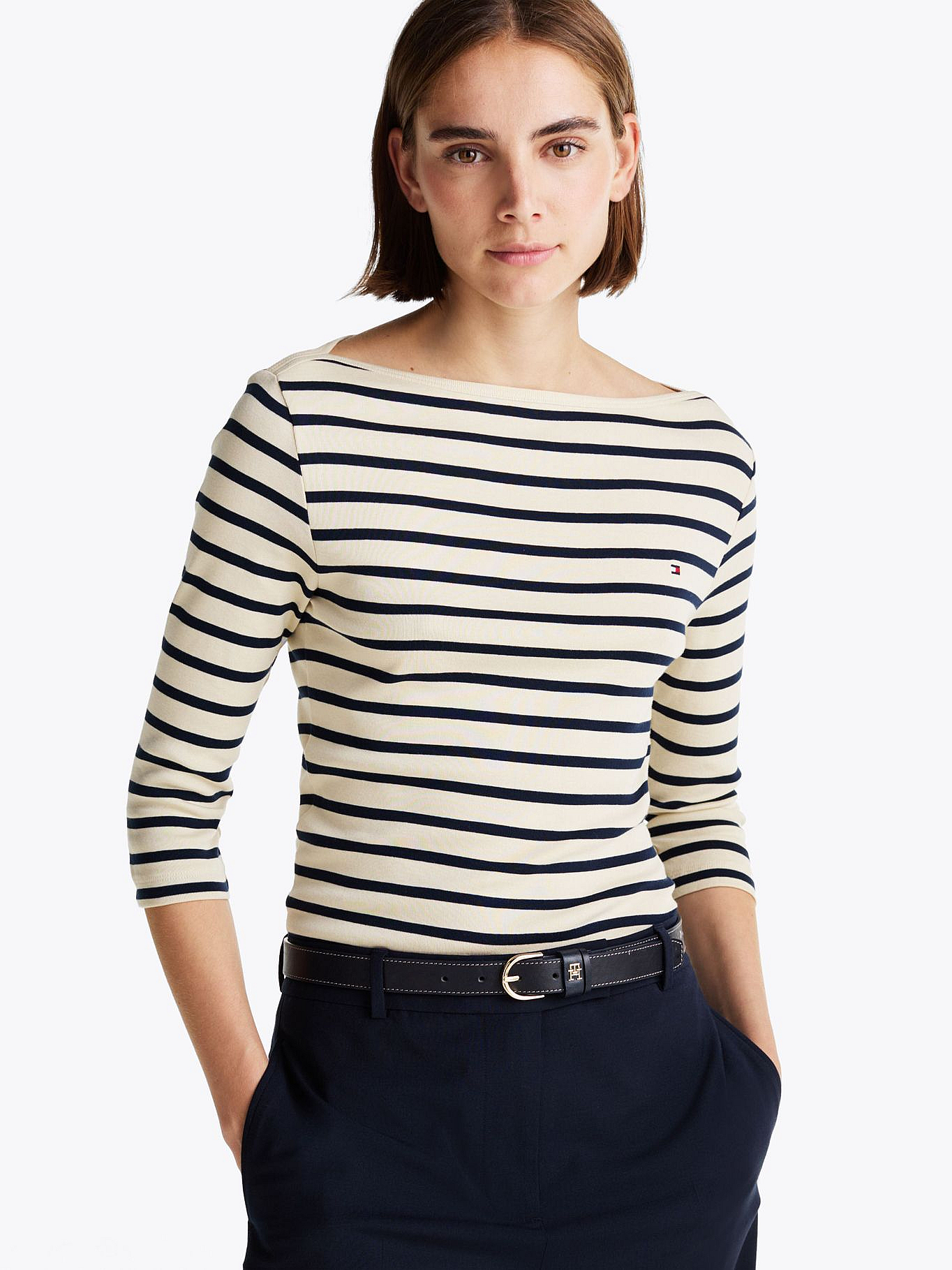 Remera De Cuello Bote Manga Tres Cuartos Slim FitTalles disponibles