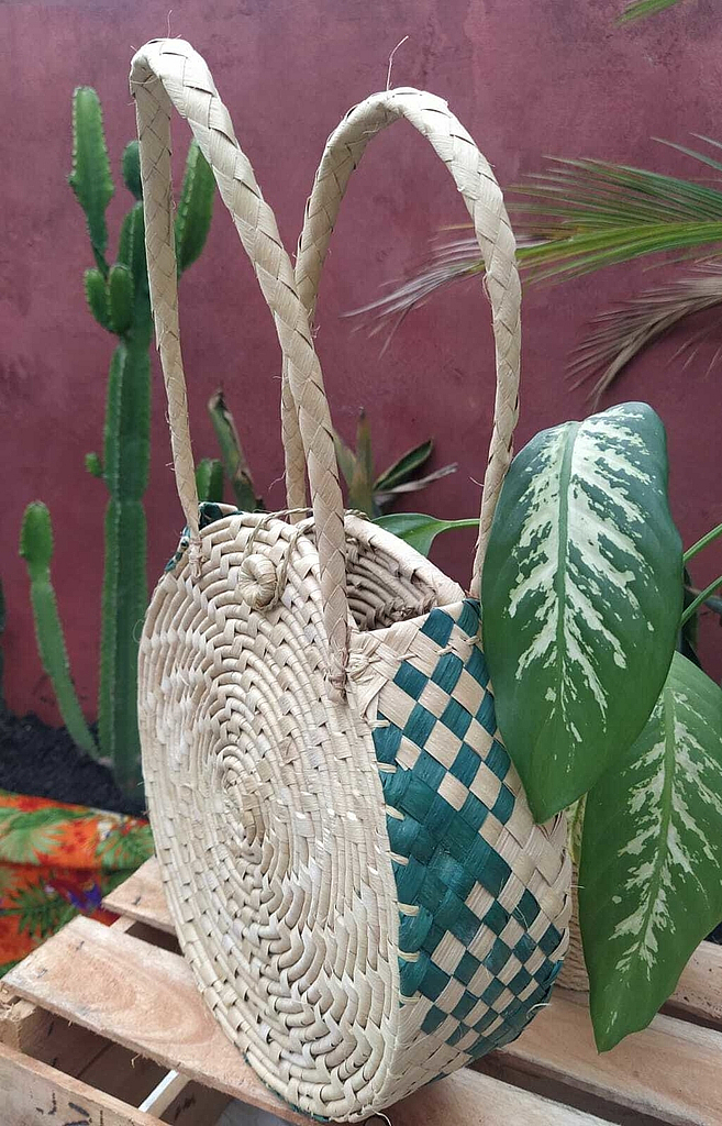 Bolsa De Palha Natural Redonda Blue