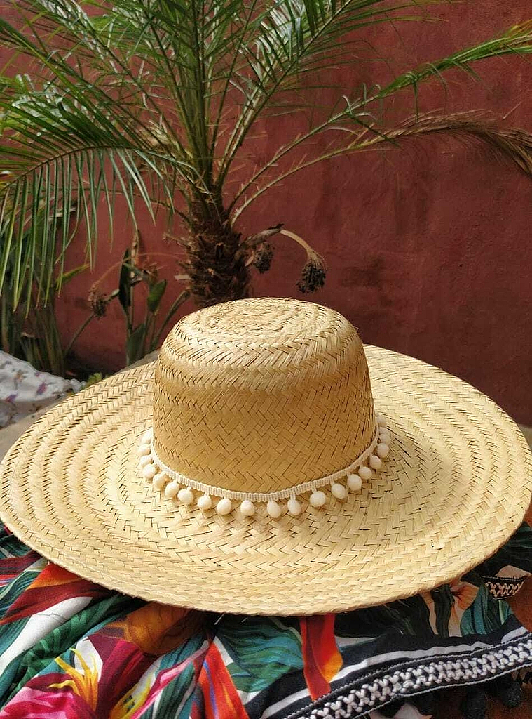 Chapéu Rústico Carnaúba Pompom BrancoDescrição