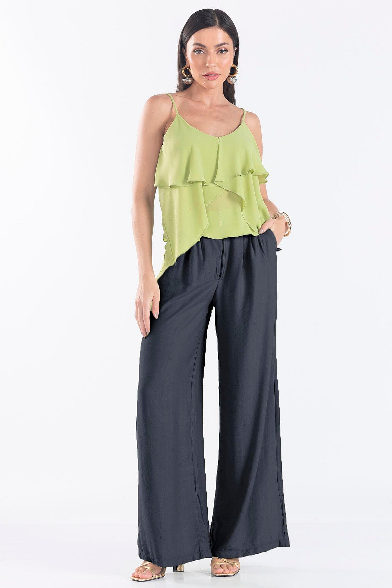 *Calça Reta Cintura Alta Assimétrica