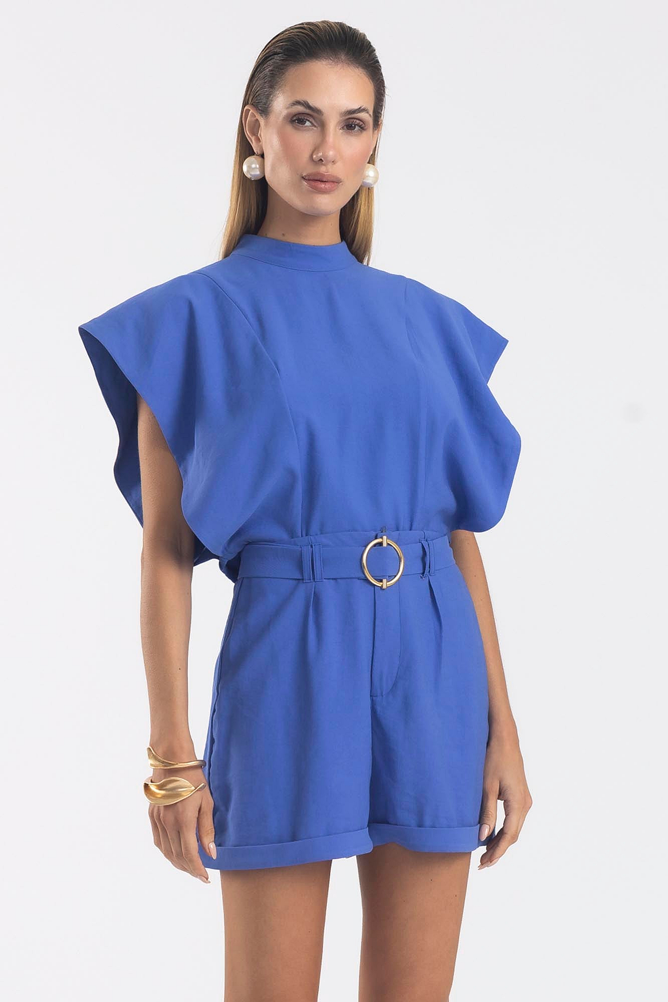 *Blusa Cropped Gola Alta Com Aba