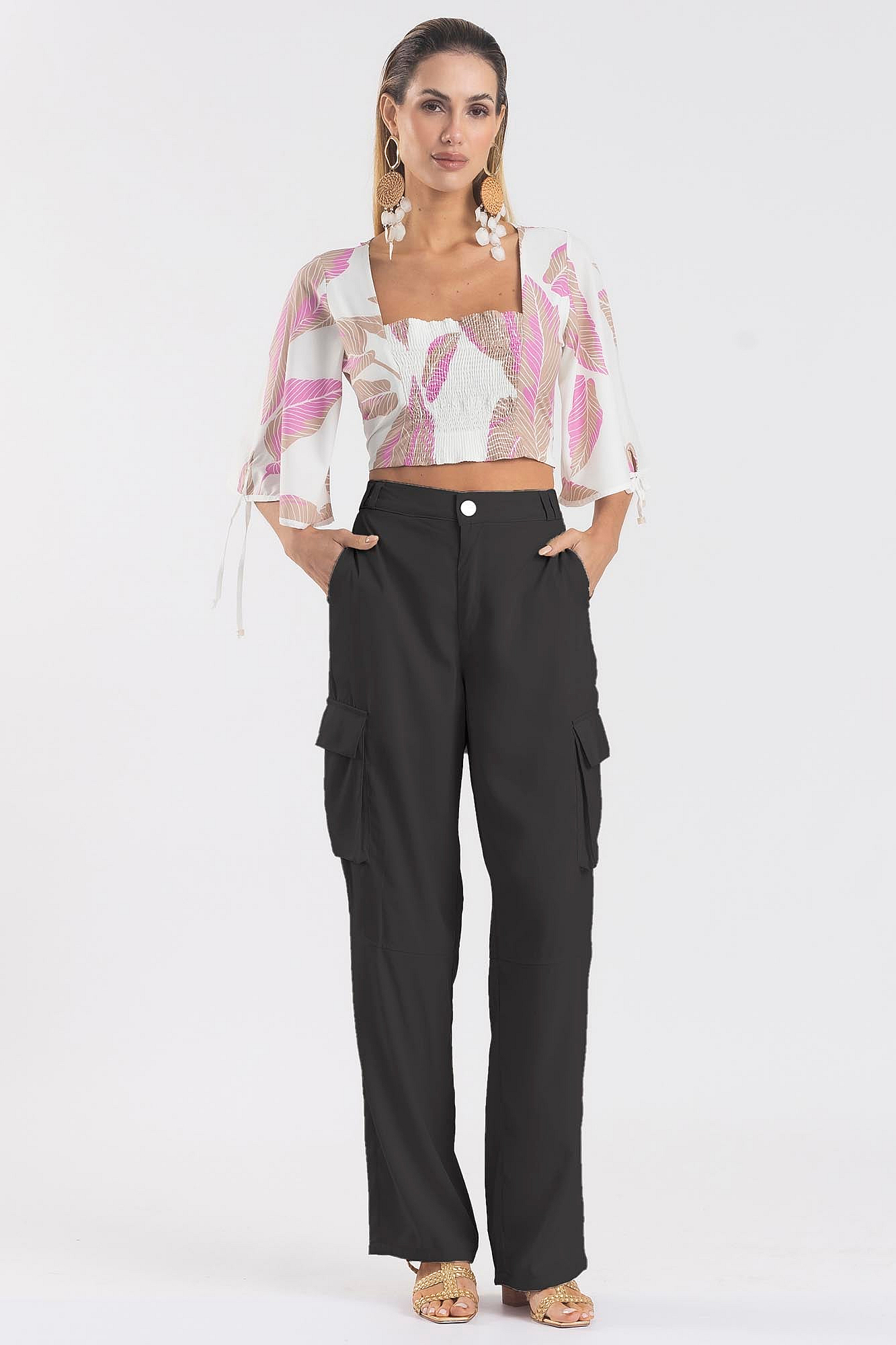 Calça Alfaiataria Reta Com Bolso CargoDescrição