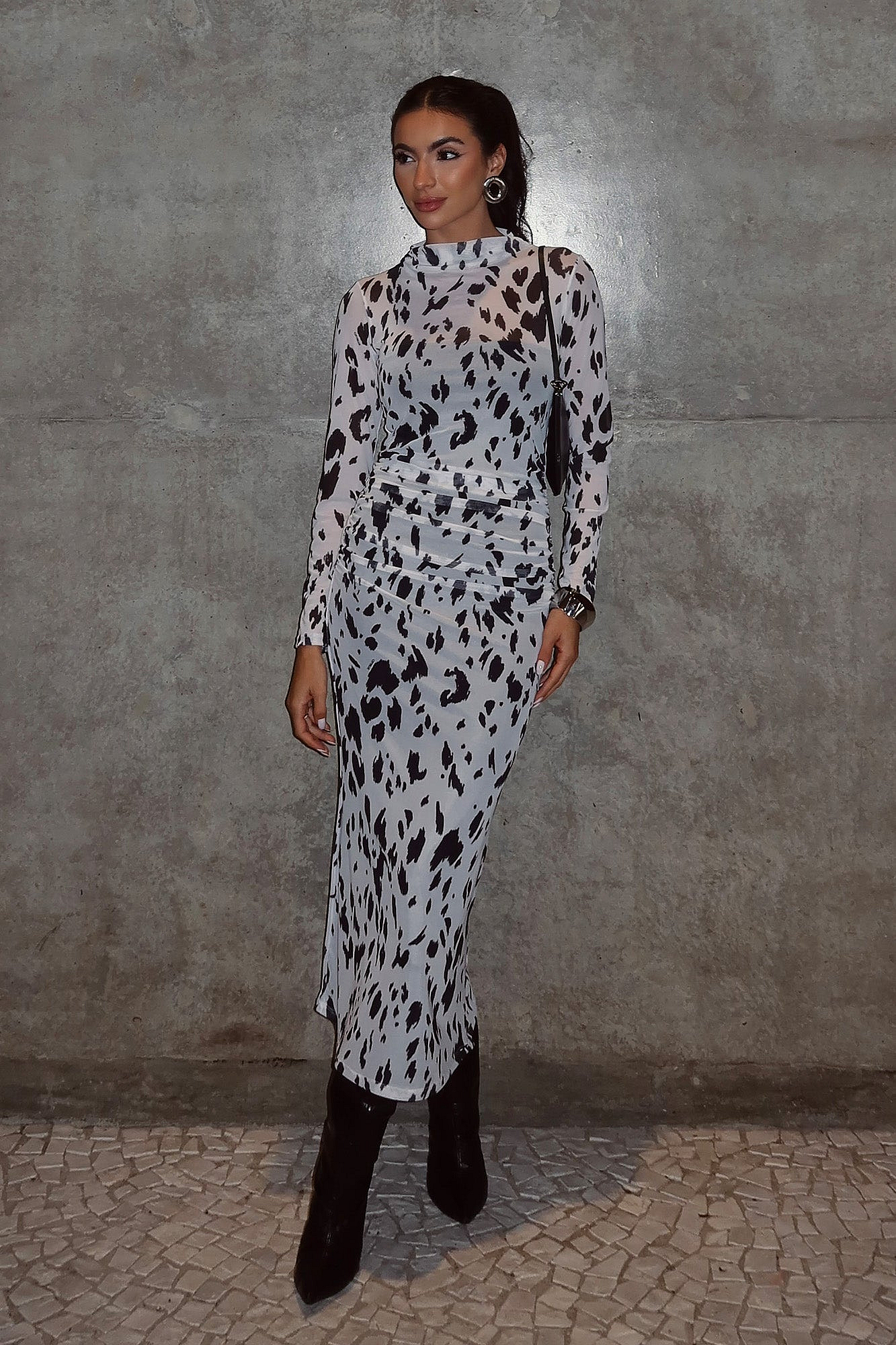 Vestido Justo Gola Alta Em TuleDescrição