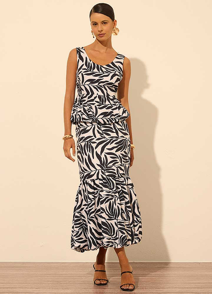 Saia Super Midi Com Babado Balonê