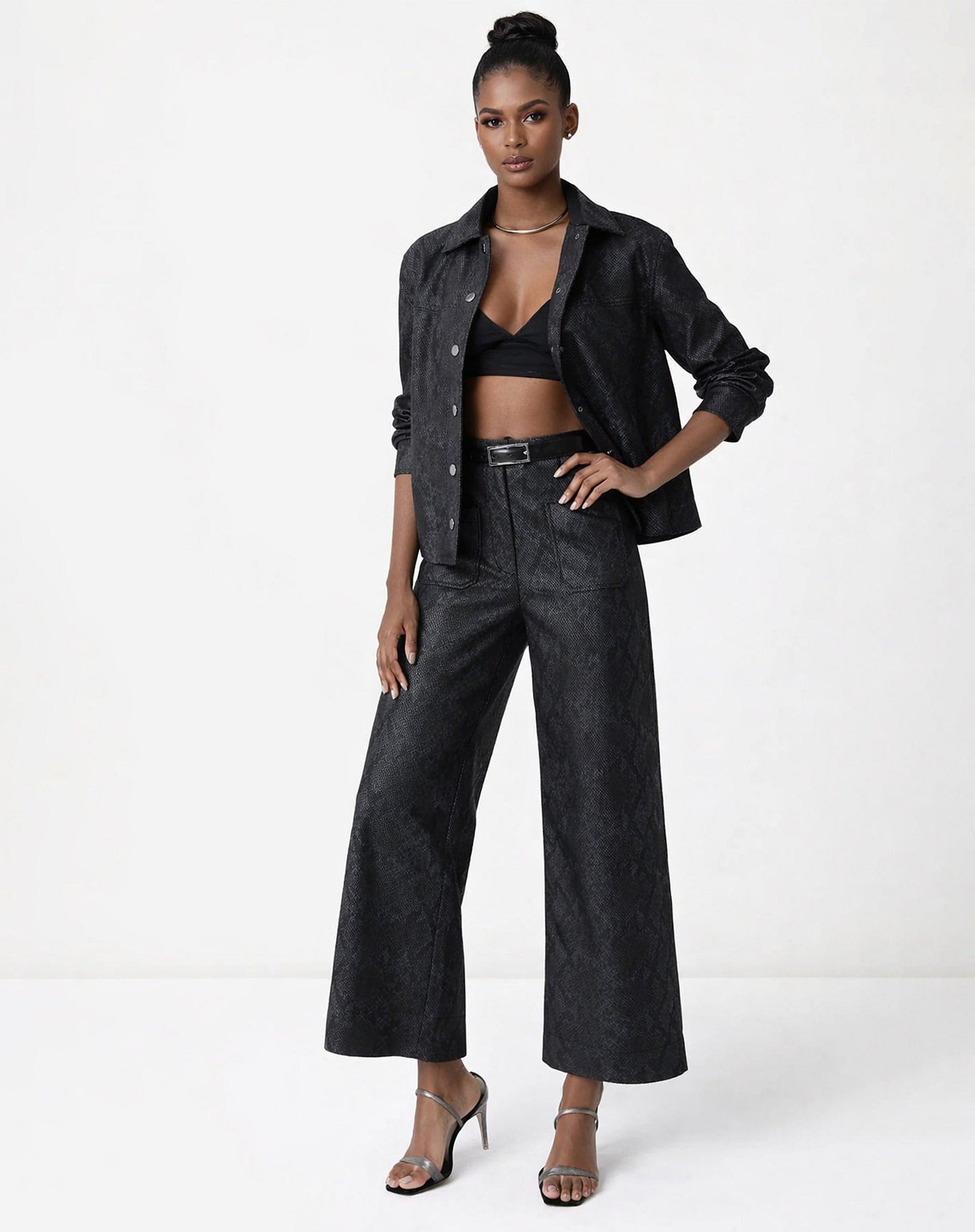 Calça Reta Cobra Pu - PretoDescrição