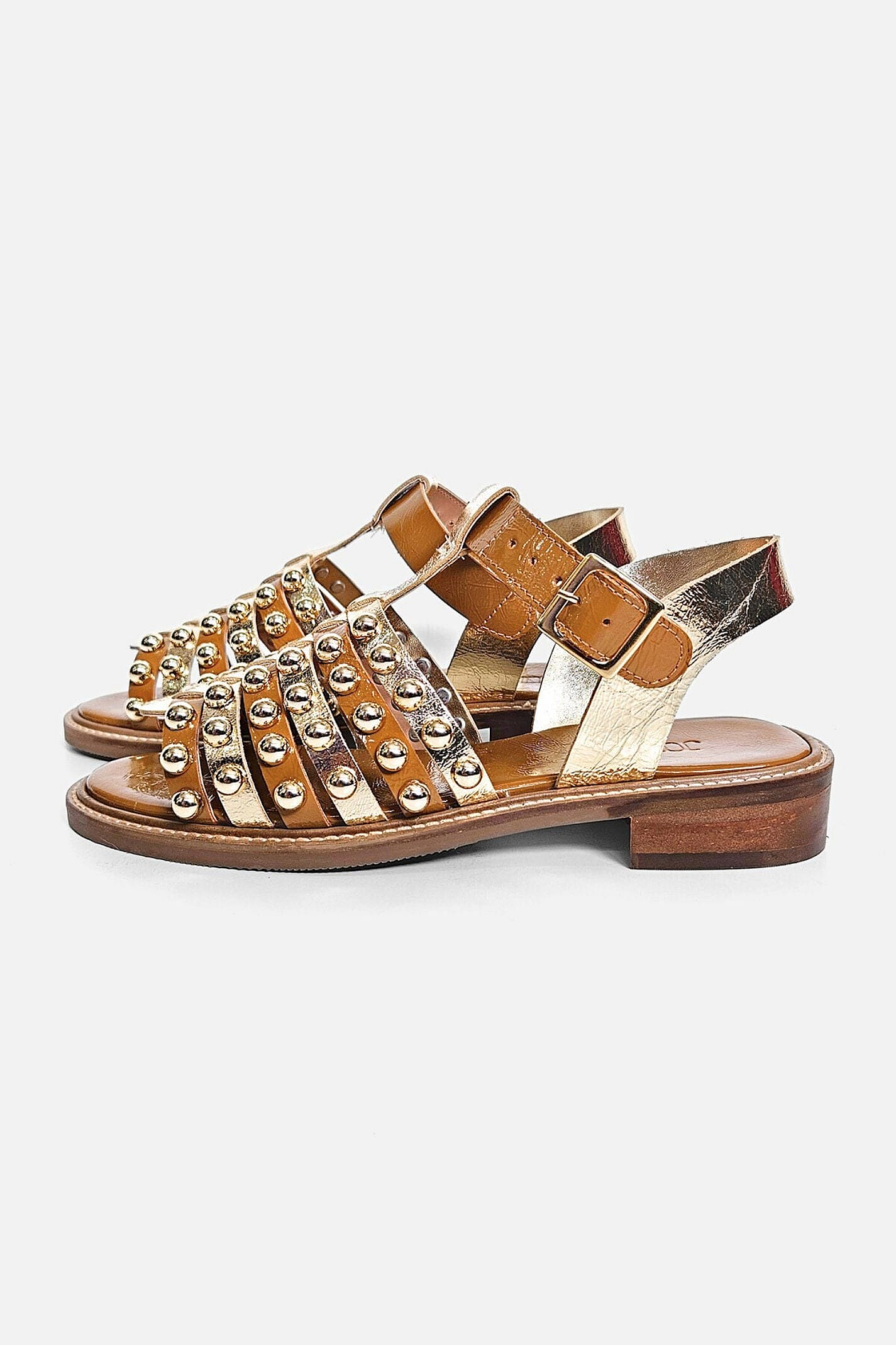 Sandália Spot - Caramelo E Dourado