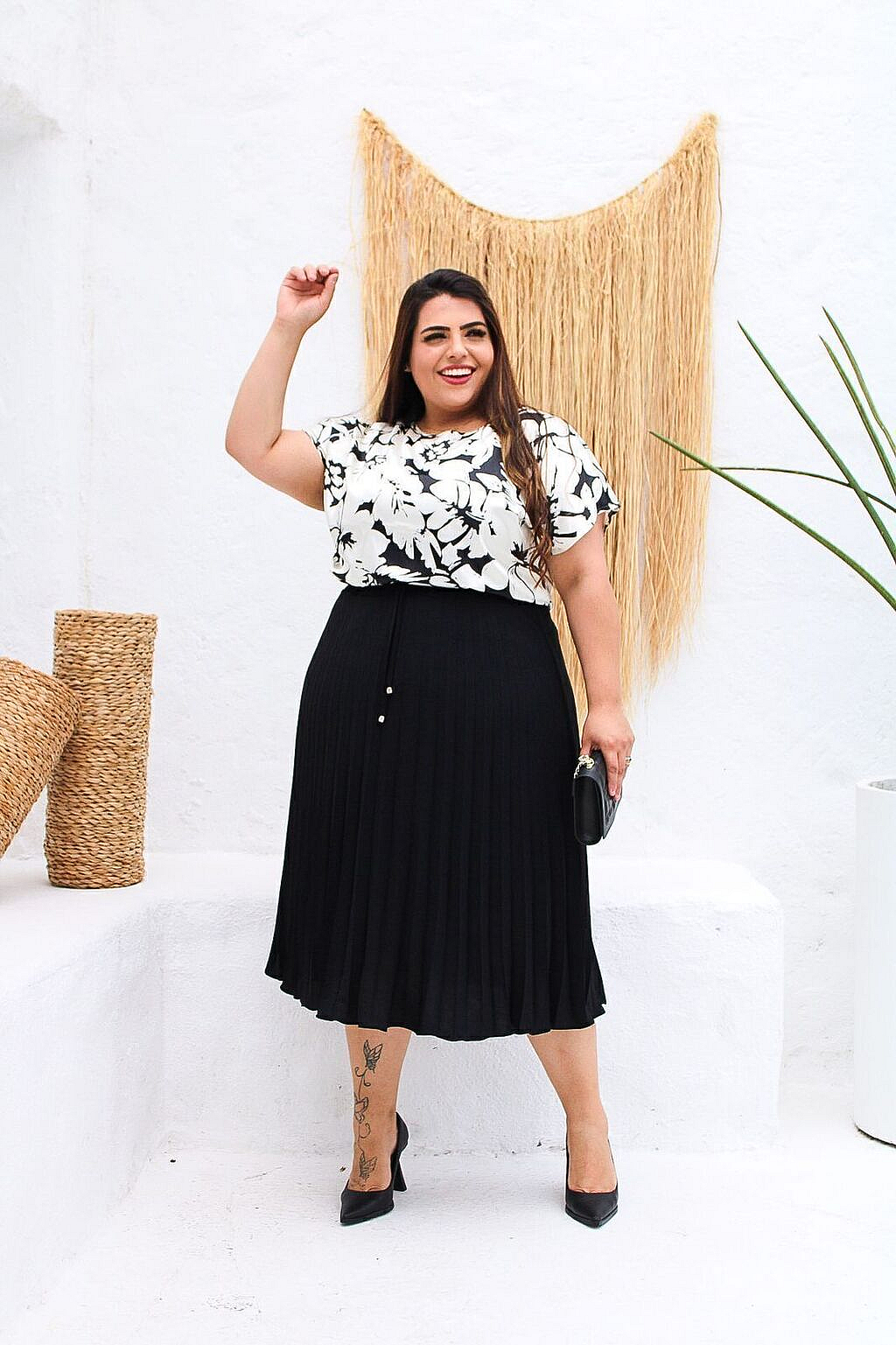 Saia Midi Plissada Evasê Em Crepe Dunas Com Forro Ref.04798062Cores disponíveis