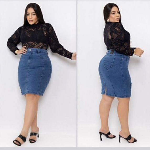 Saia Jeans Curta Plus Size Com Fenda Posterior – Casual E VersátilTamanhos disponíveis