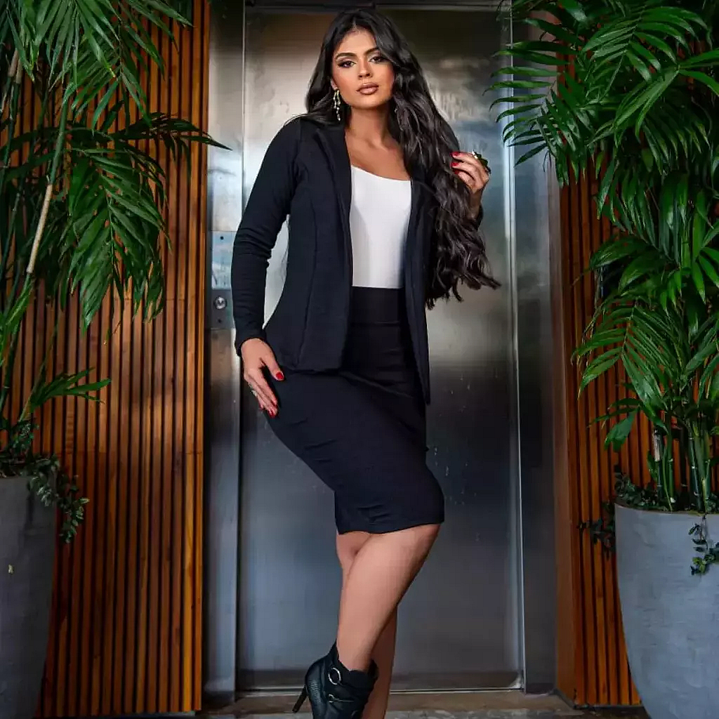 Conjunto Feminino Preto Blazer Forrado E Saia Lápis Social Moda Evangélica Ref.0100925059Tamanhos disponíveis