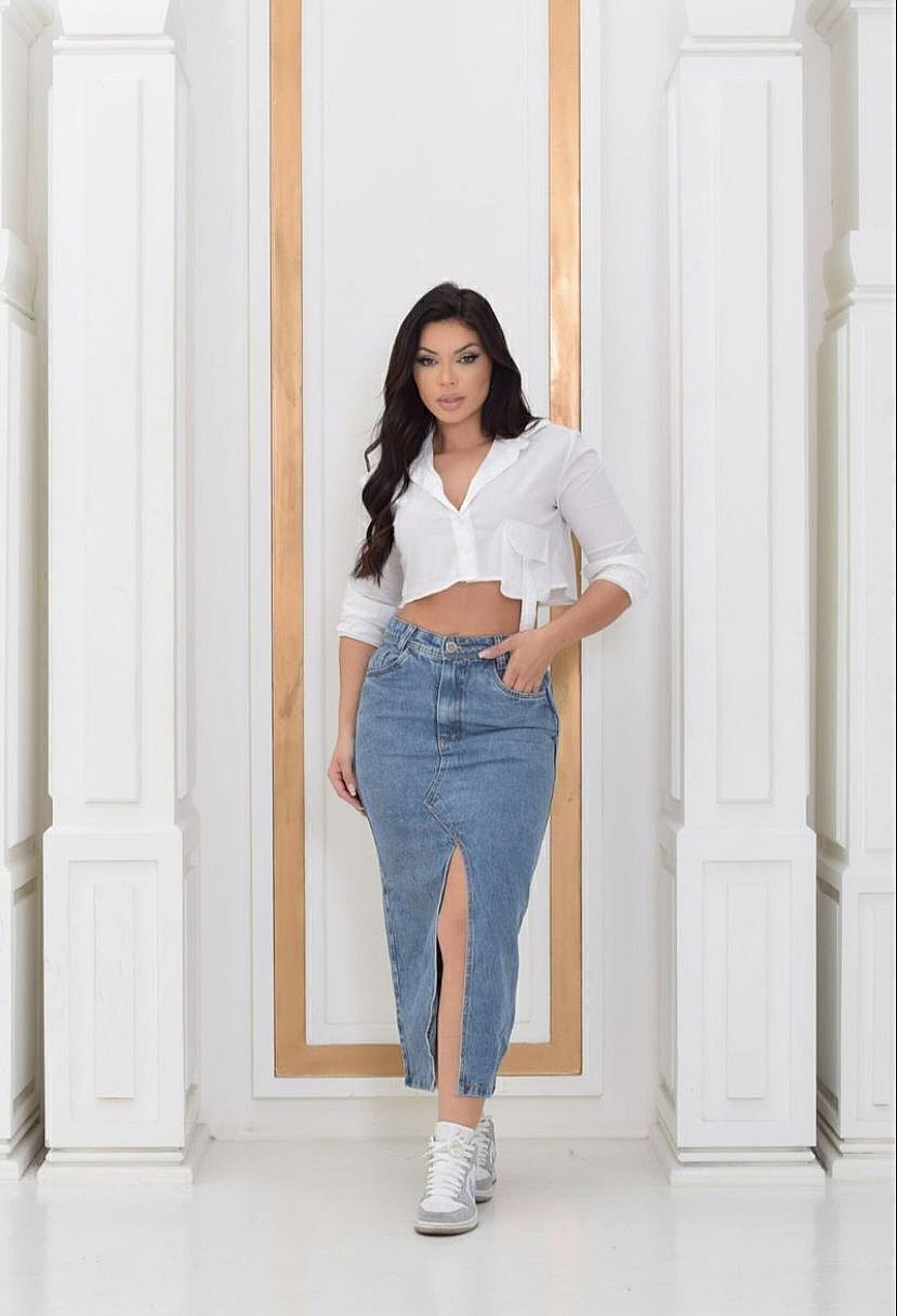 Saia Jeans Longa Midi Cintura Alta Ref:x347261050Descrição