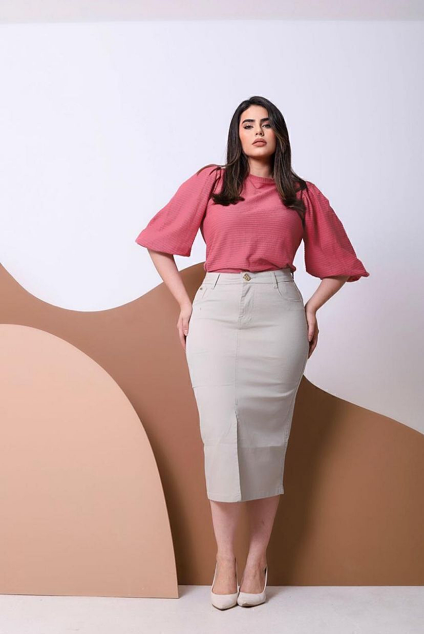 Saia Lápis Feminina Sarja Collor Justa Ao Corpo Moda Evangélica Elegante Ref.53480800Descrição