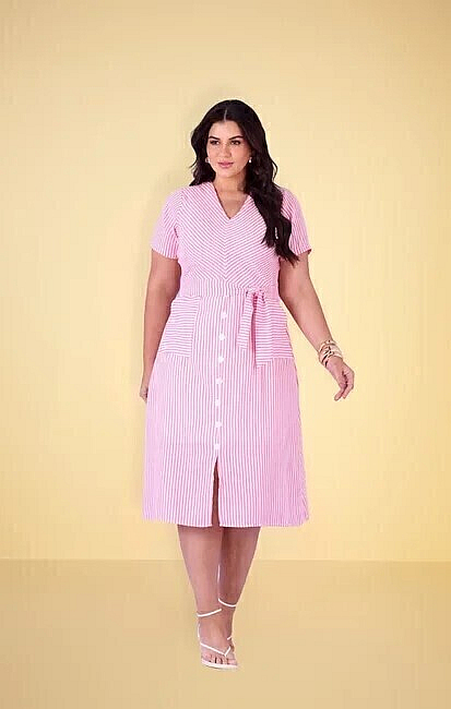Vestido Midi Evasê Com Listras Diagonais Hadaza Ref.0516210205 (Consig)Tamanhos disponíveis