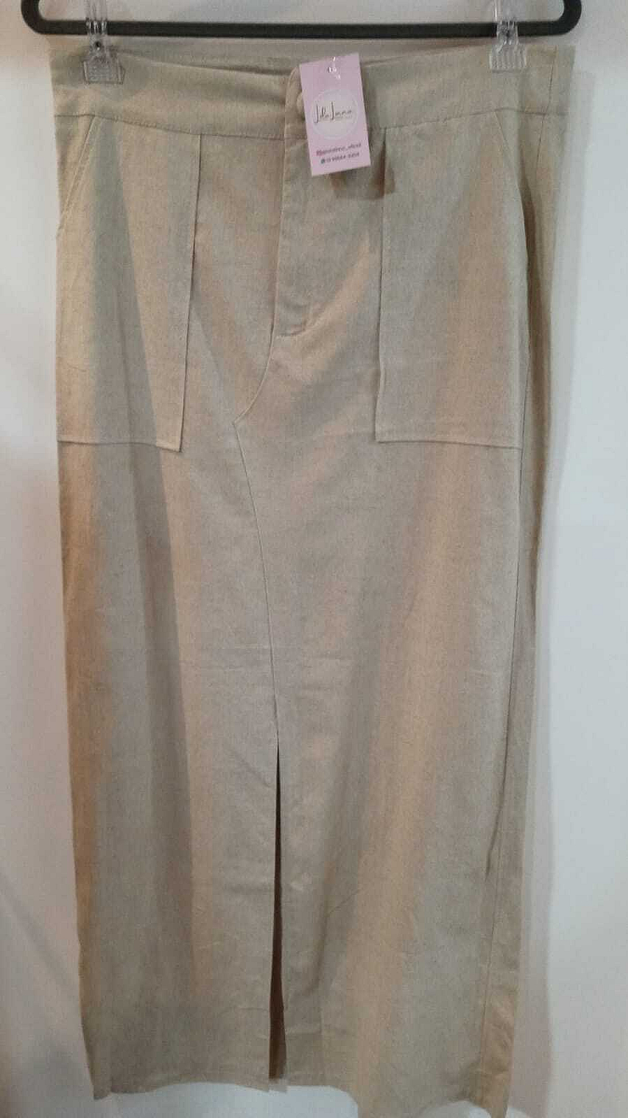 Saia Lapiz Longa De Linho Com Fenda E Bolsos Frontais - Ref: 080060Descrição