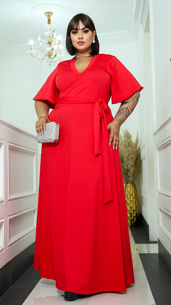 Vestido Plus Size Longo Larissa Em Tecido Romantic –Ref.21110705Tamanhos disponíveis