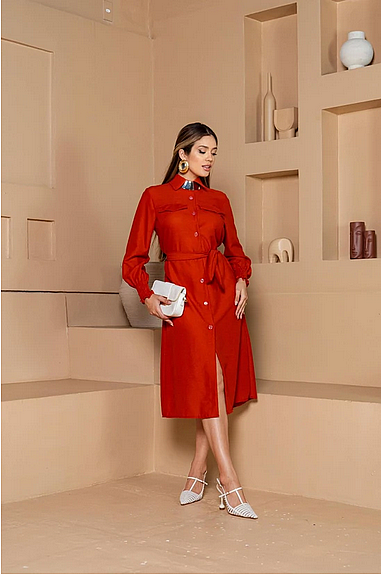 Vestido Chemise Midi Pilar Em Linho Com Cinto – Elegância Natural E Conforto Ref.06111074Tamanhos disponíveis