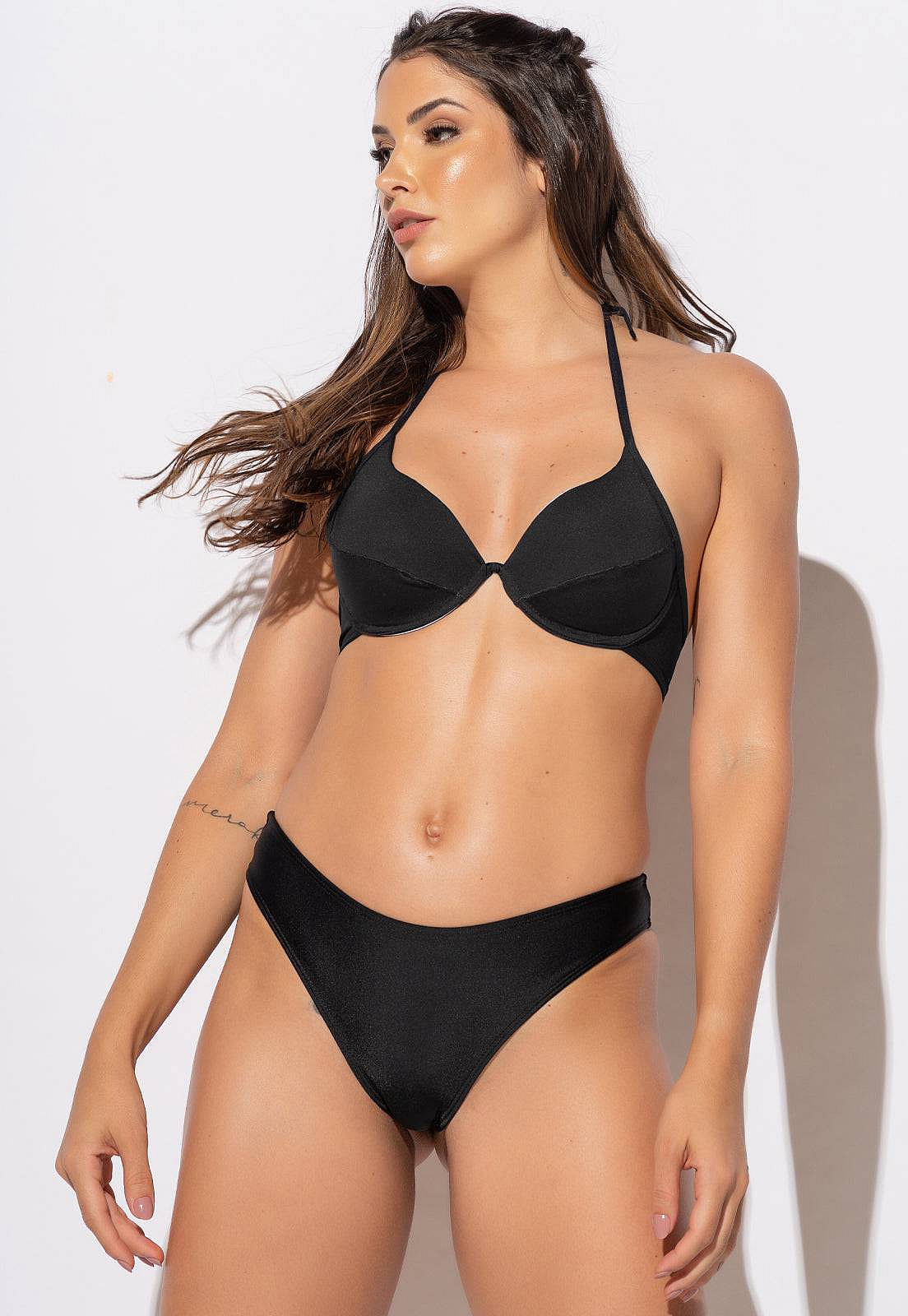 Biquíni Meia Taça Levanta Seios Aro Bojo PretoDescrição