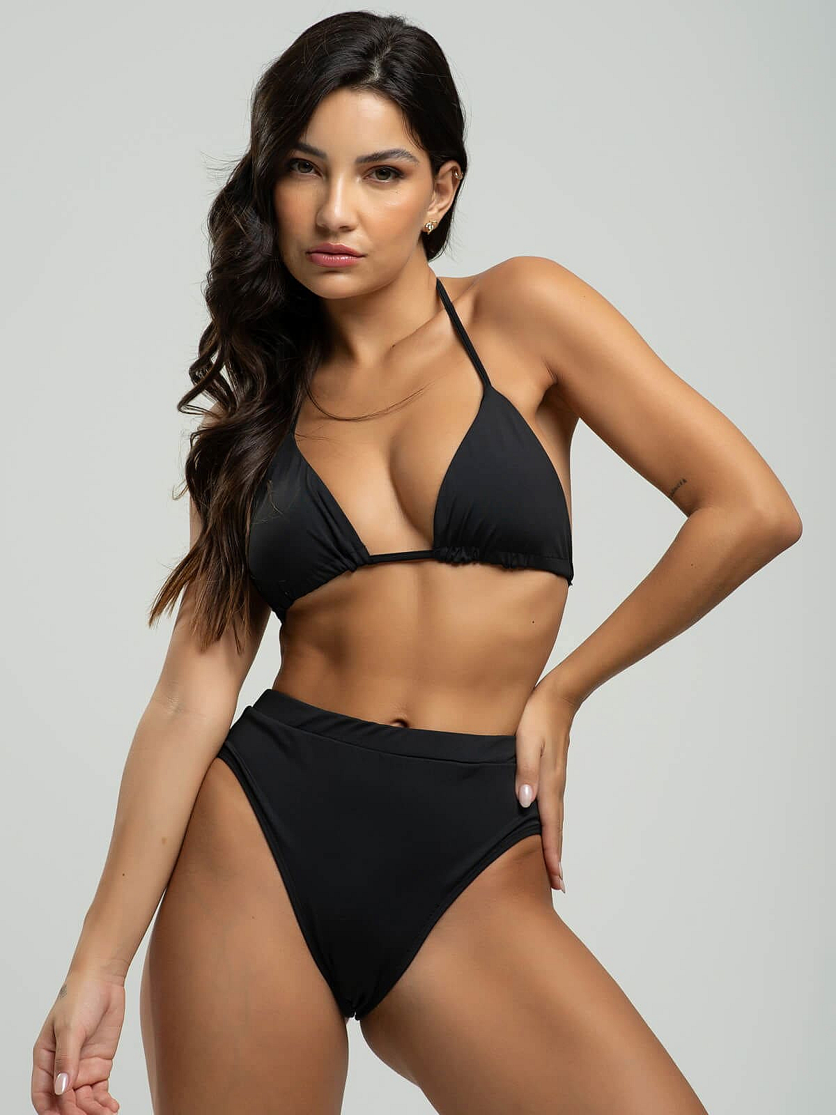 Biquíni Cortininha Hot Pants Liso PretoDescrição