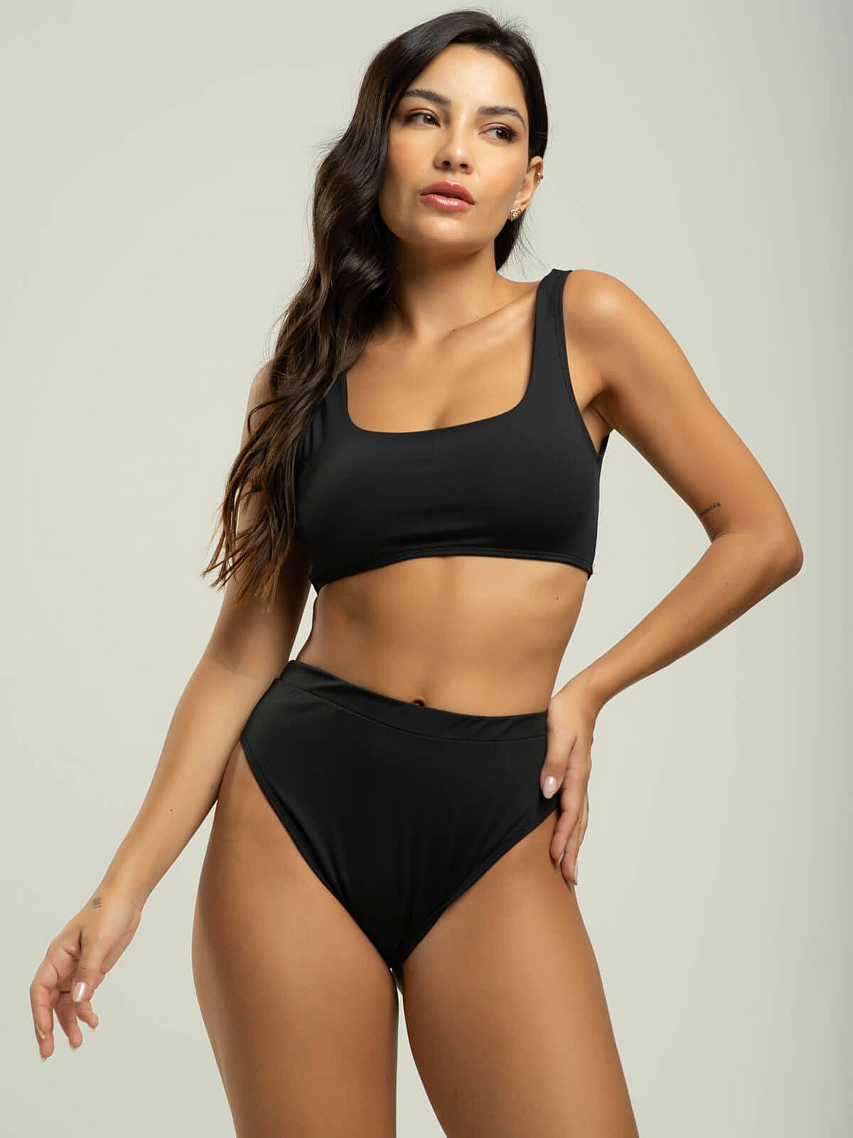 Biquini Regata Hot Pants Liso PretoDescrição