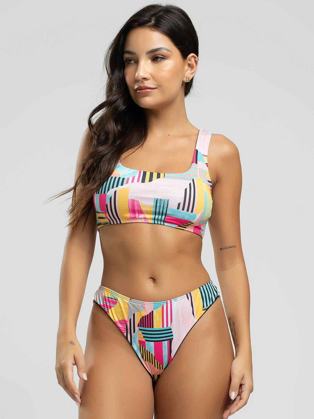 Biquini Regata Fio Duplo Estampado AmareloDescrição