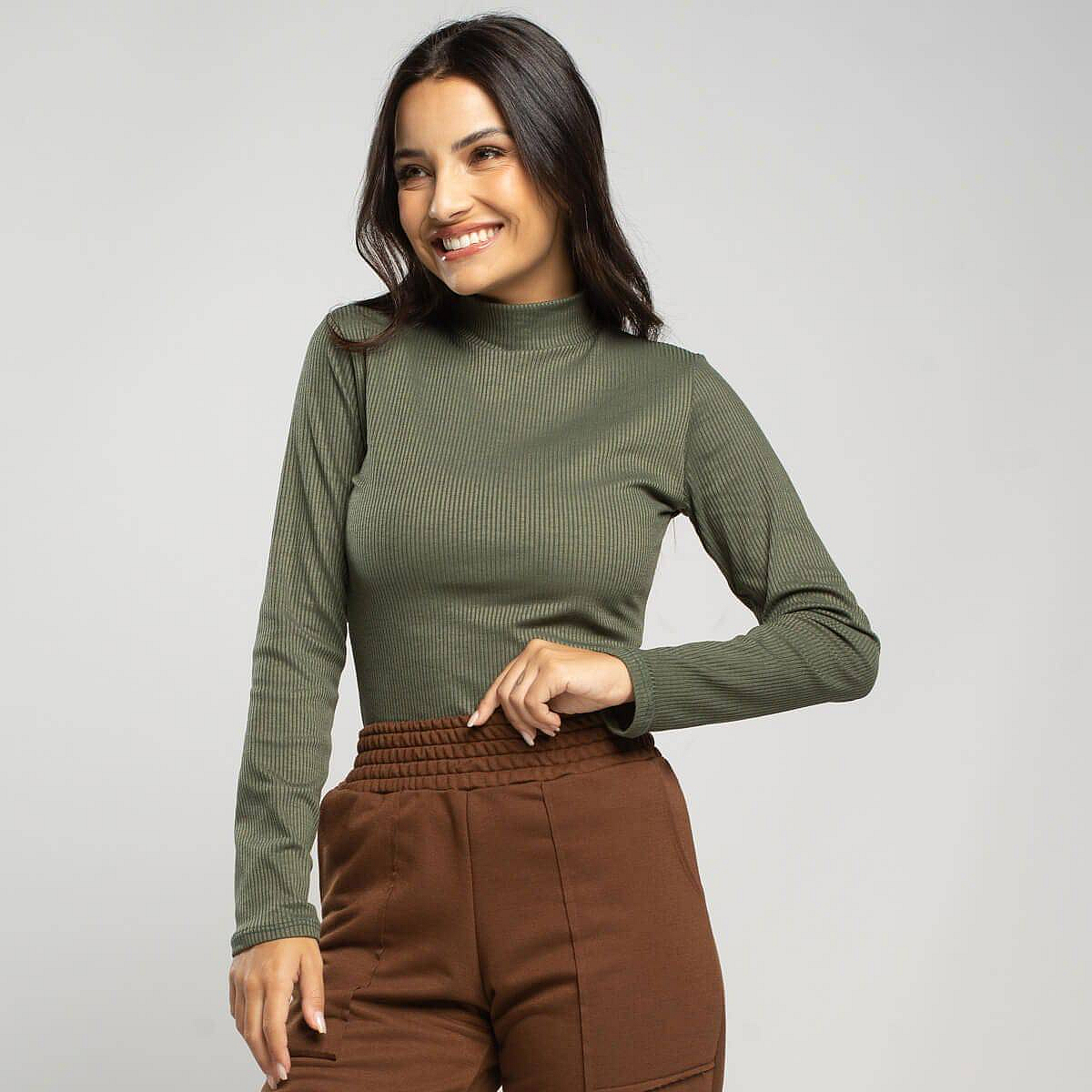 Blusa Manga Longa Gola Alta Canelada VerdeDescrição
