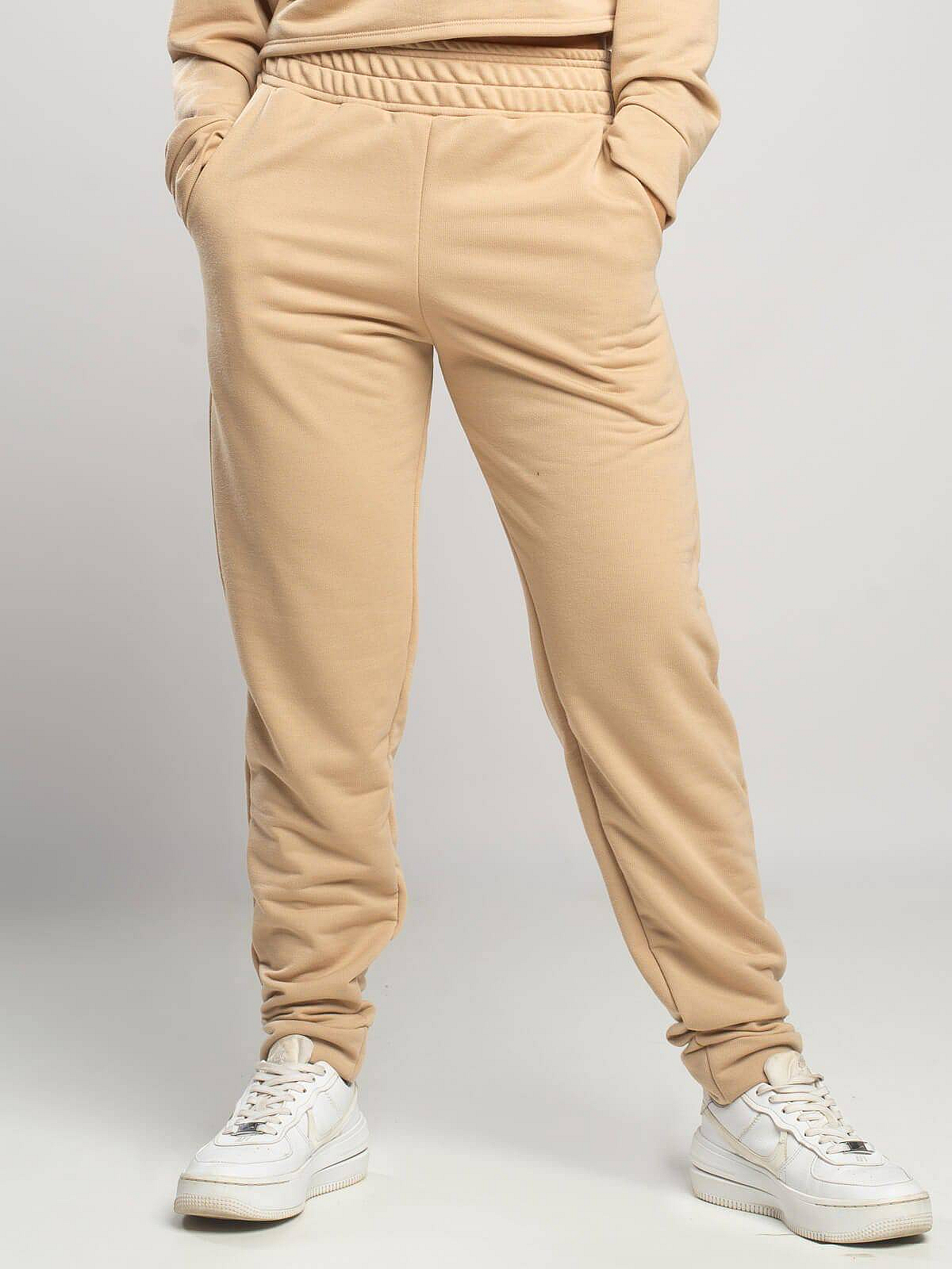 Calça Jogger Moletinho Cintura Média Bege