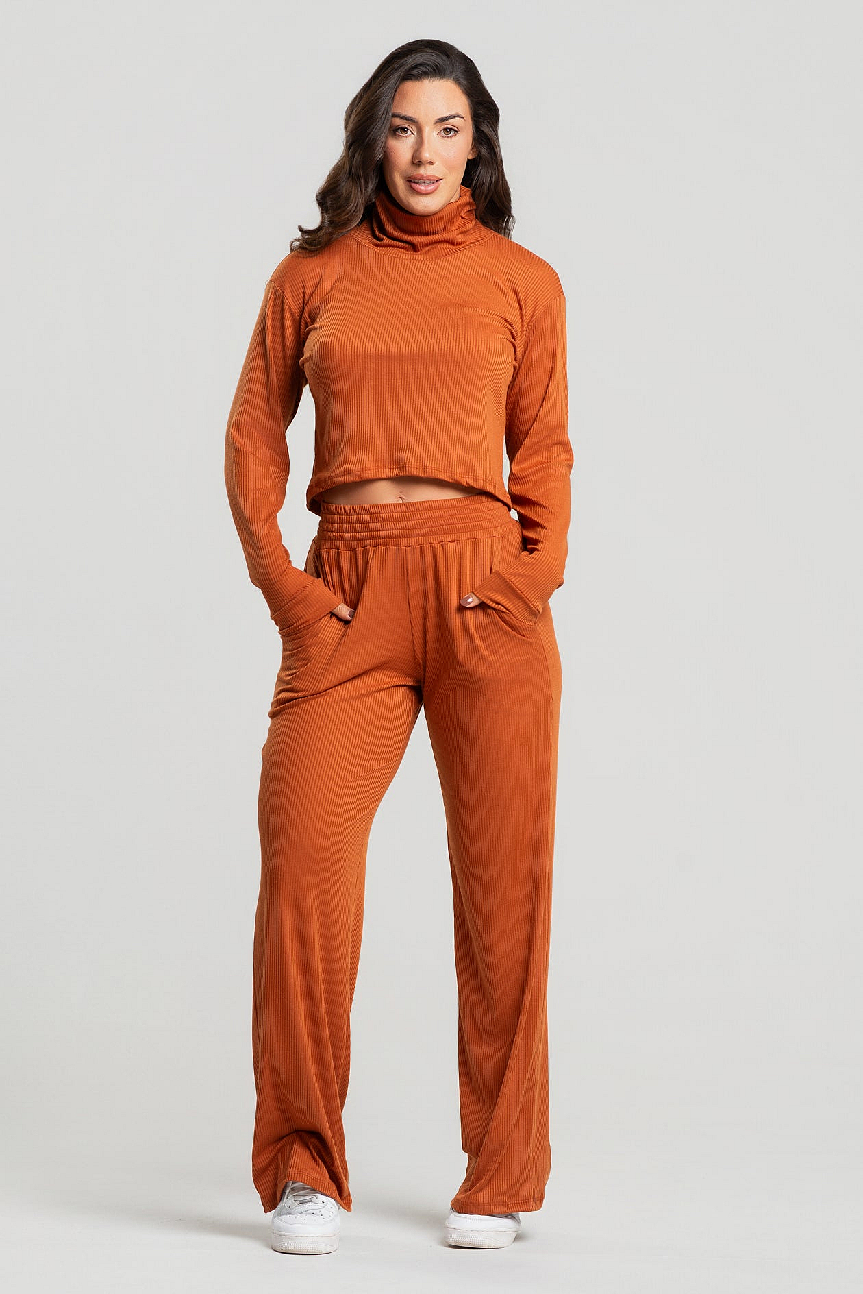 Conjunto Canelado Calça Pantalona + Blusa Golão Manga Longa TerraDescrição
