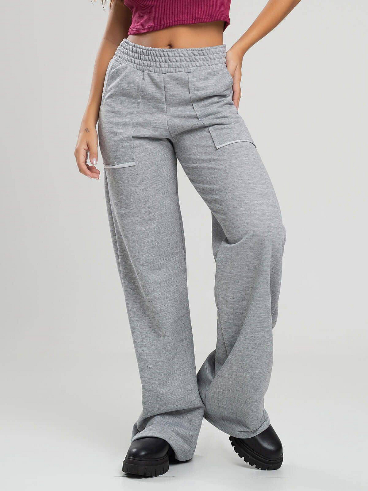 Calça Pantalona Wid Leg Moletinho Cinza