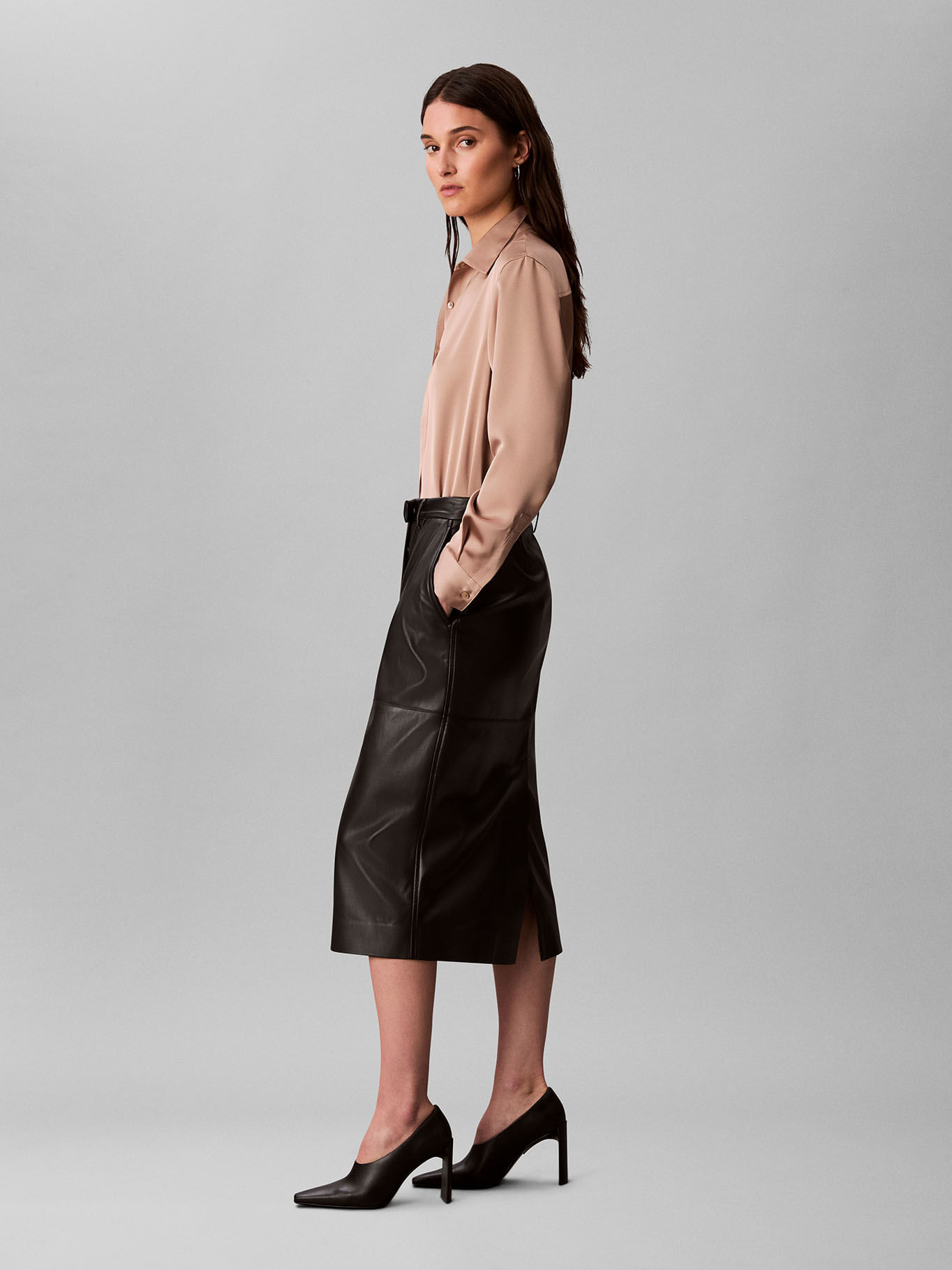 Falda Midi De Cuero Sintético