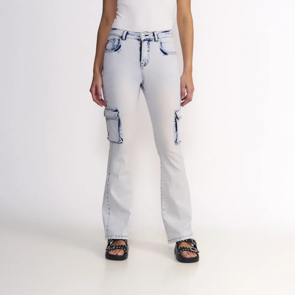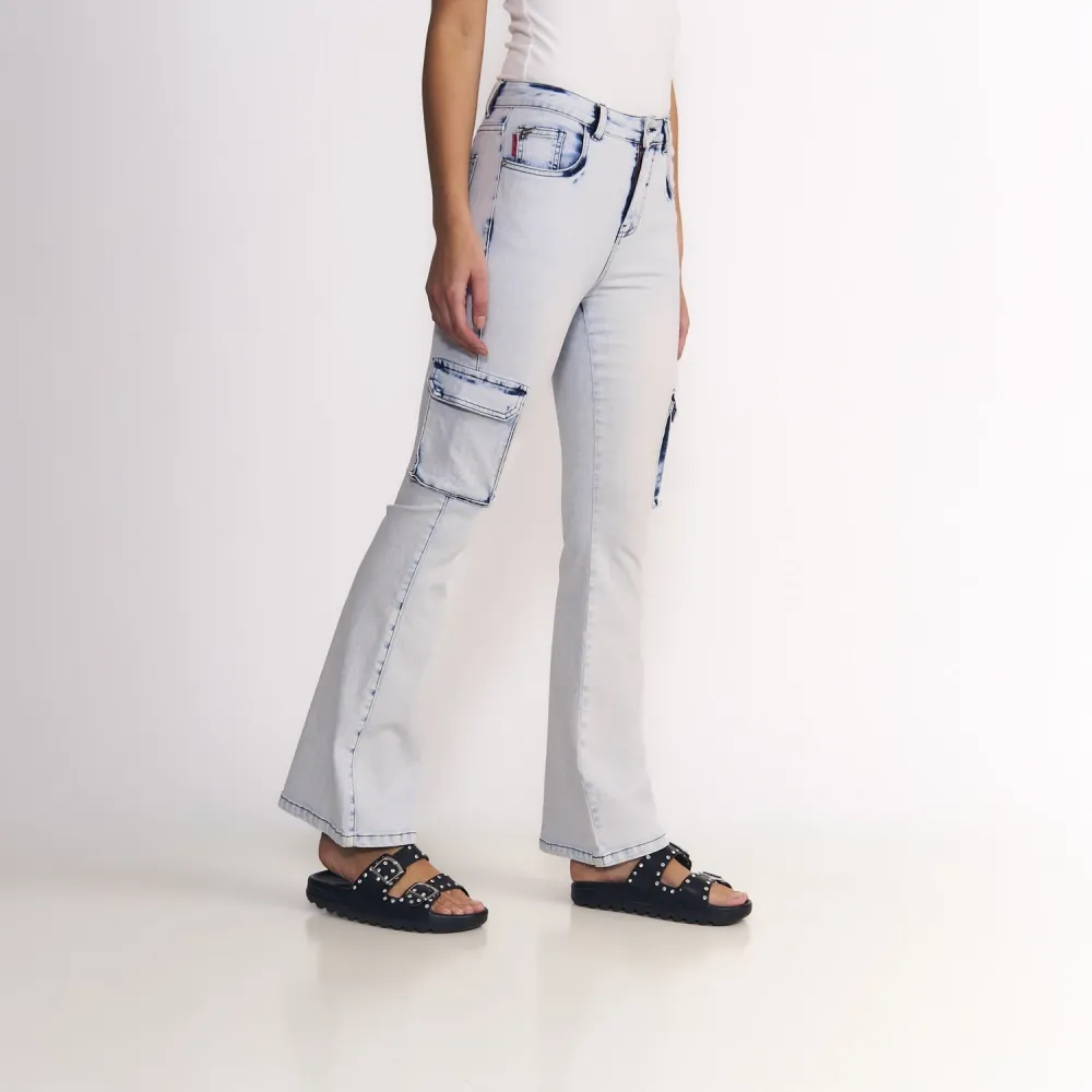 Jeans Mujer Polly Cargo Tiro Ultra Alto Light Blue