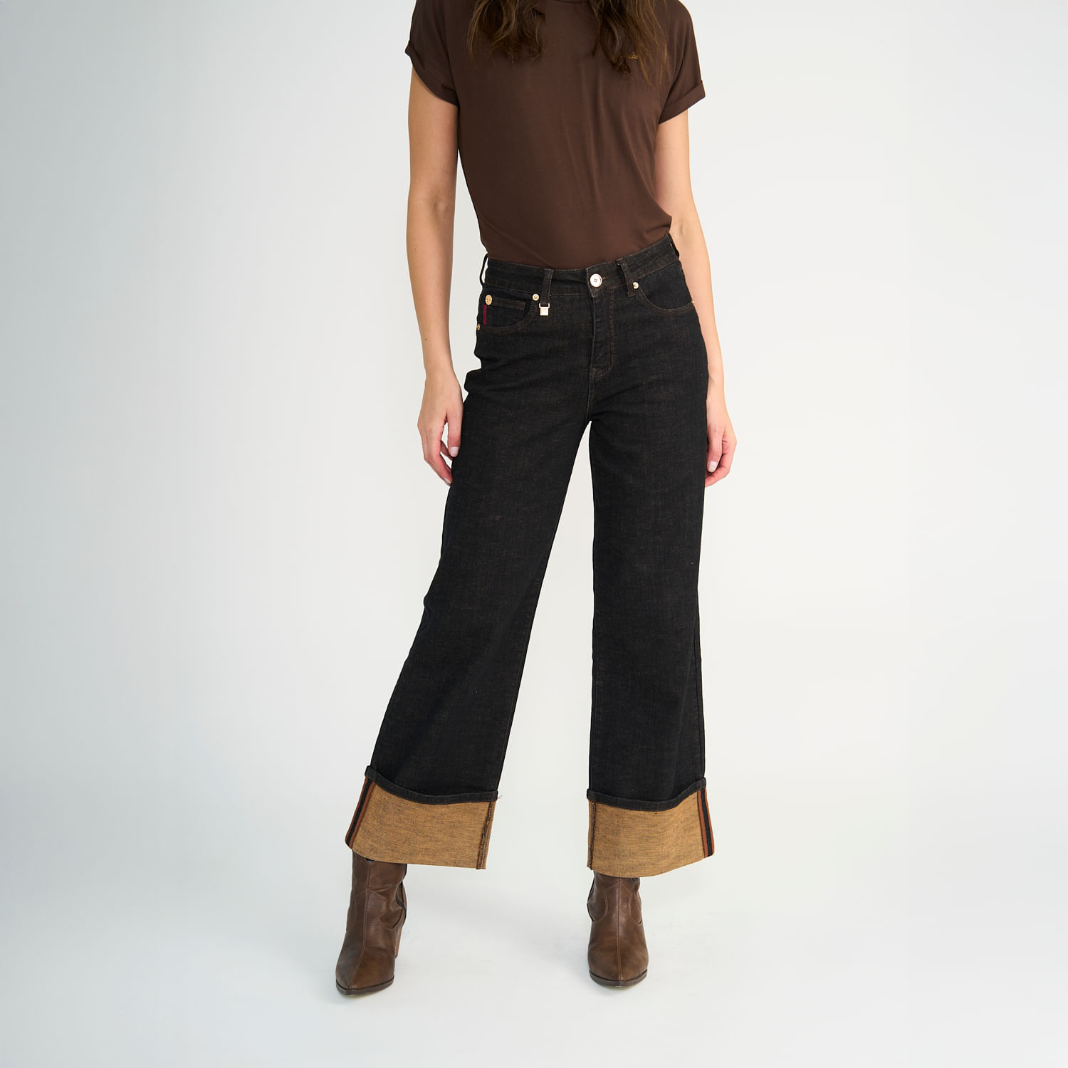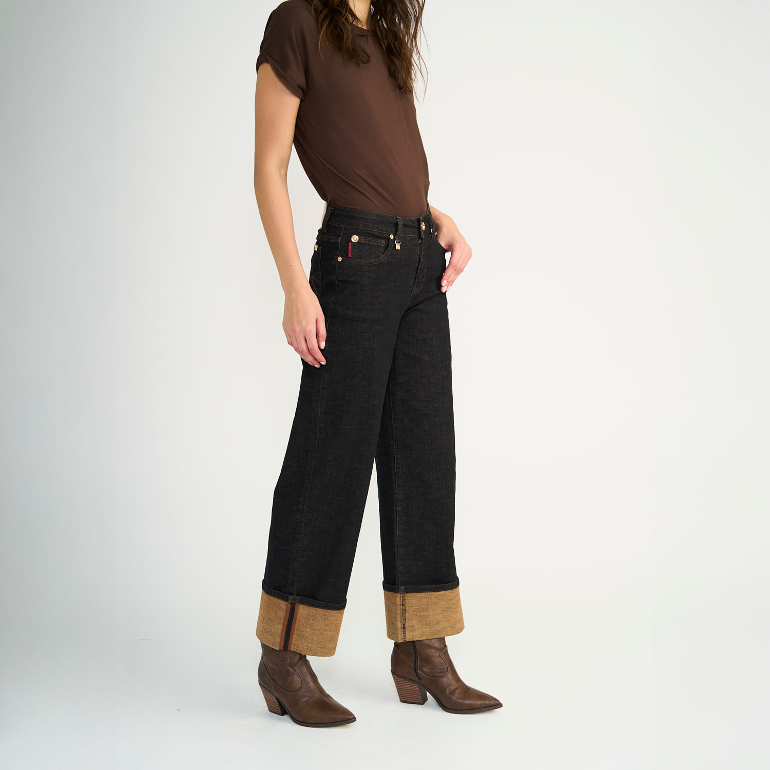 Jeans Ellus Mujer Wide Raw Castaño Turn UpTalles disponibles