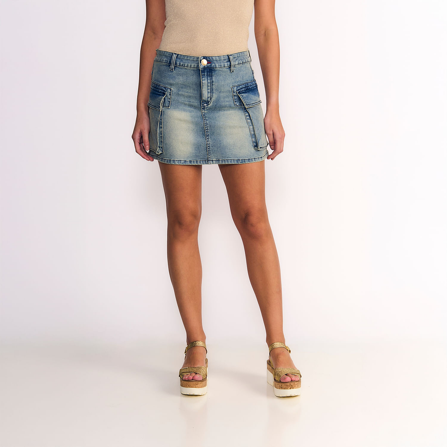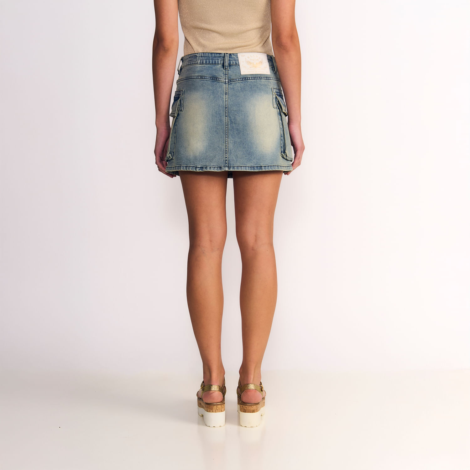 Falda Mini Cargo Mujer Tiro Bajo Oxidada Light BlueTalles disponibles