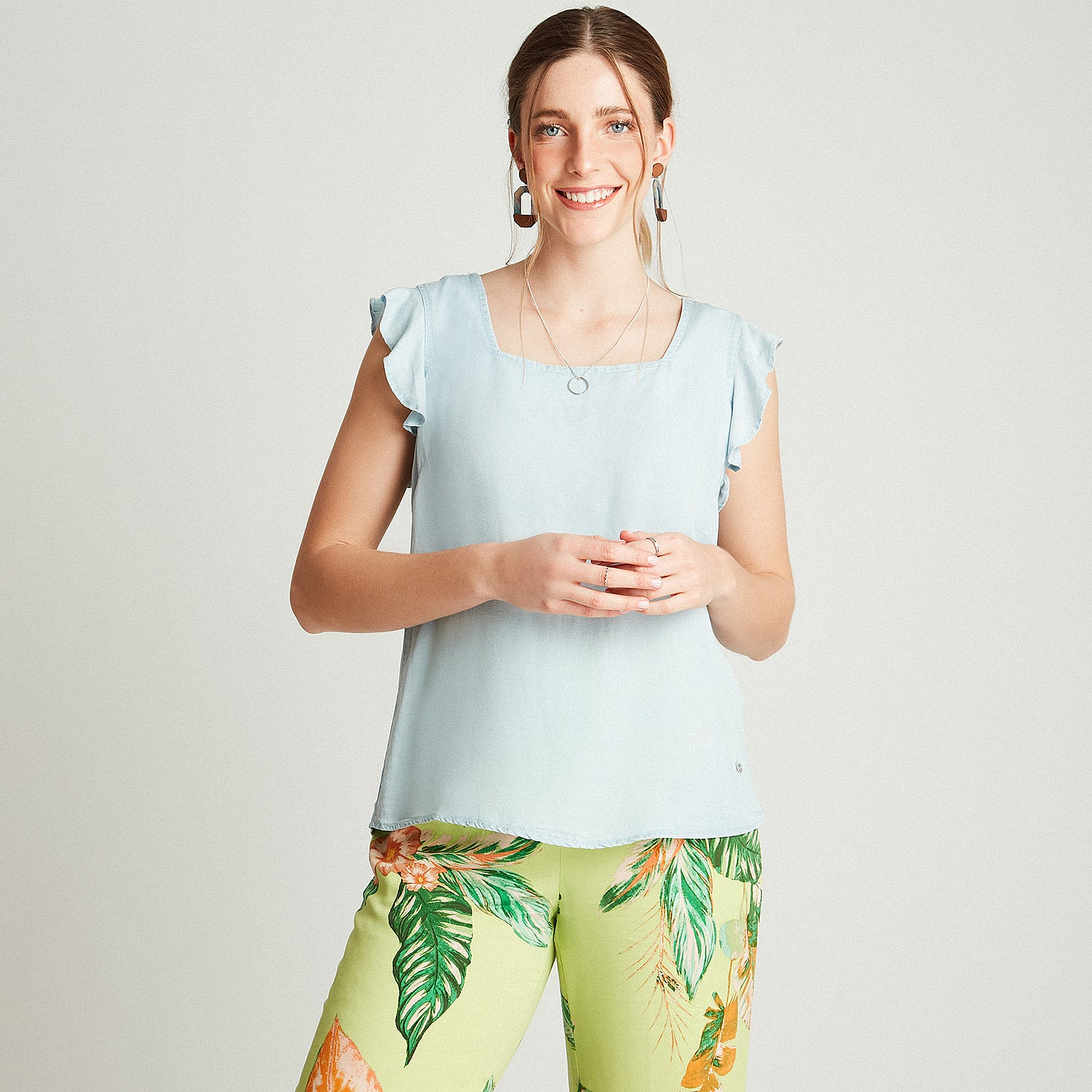Blusa Celeste Sin Manga Cuello CuadradoColores disponibles