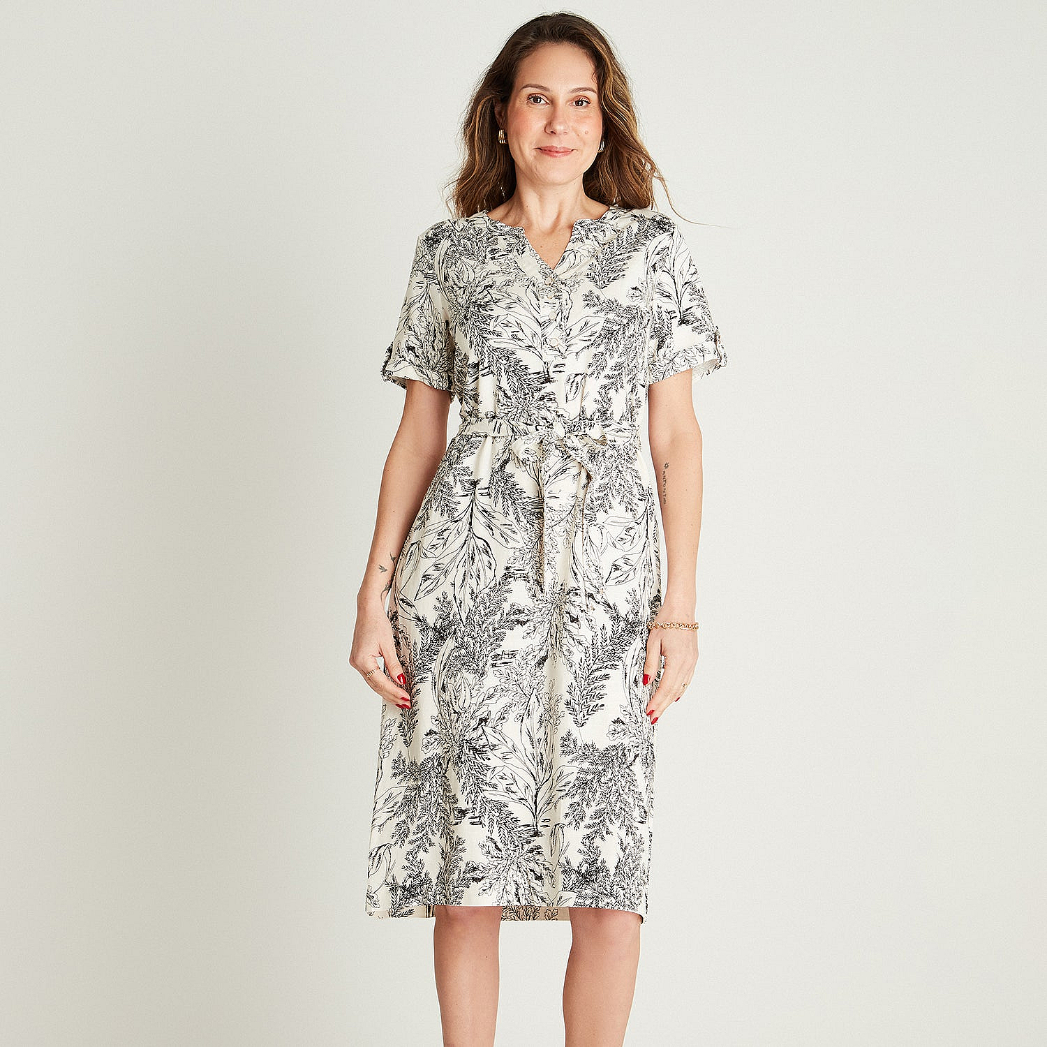 Vestido Maxi Lino Crudo Manga Corta Cuello Mao