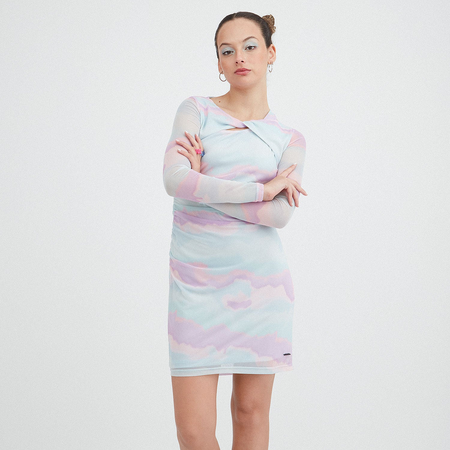 Vestido Corto Mesh Estampado Con Detalle En Cuello | AcuarelaColores disponibles
