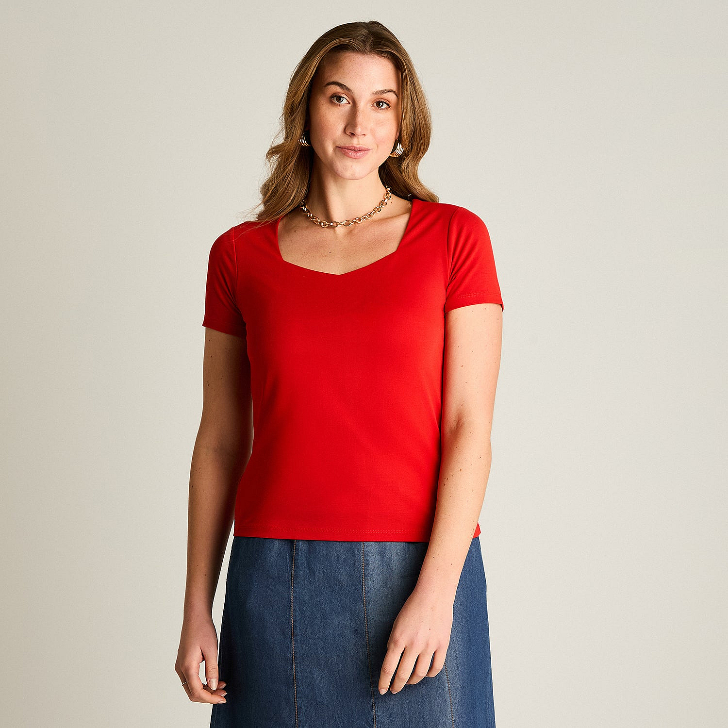 Polera Roja Escote Cuadrado Y Calce Cómodo